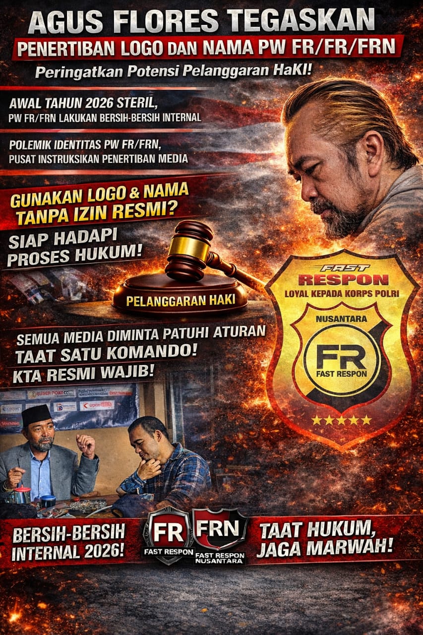 Ketua Umum Fast Respon (FR) / Fast Respon Nusantara (FRN), Raden Mas MH Agus Rugiart, S.H atau yang akrab disapa Agus Flores, menyampaikan penegasan terkait penggunaan nama, logo, dan identitas organisasi FR/FRN oleh pihak-pihak tertentu yang dinilai belum memiliki legalitas dan izin resmi.