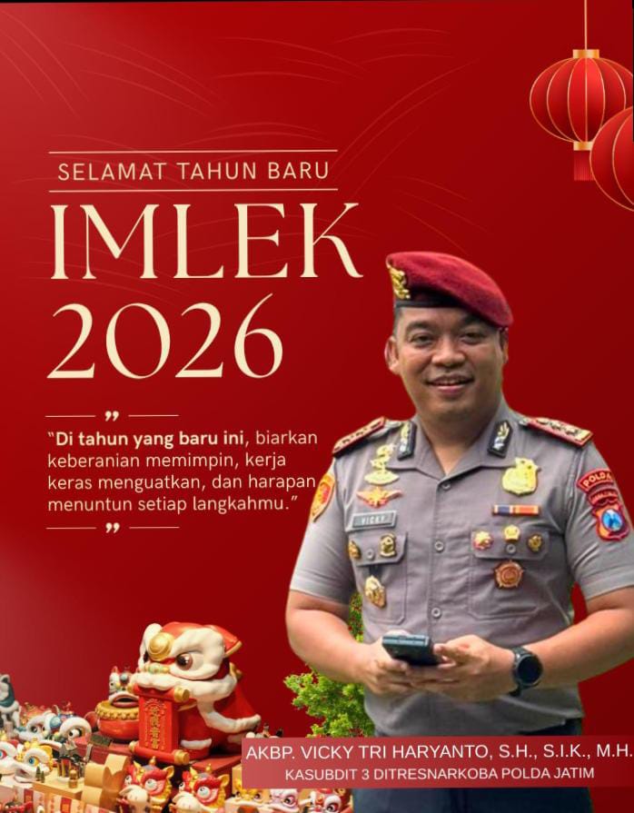 Kasubdit 3 Ditresnarkoba Polda Jawa Timur, AKBP Vicky Tri Haryanto, S.H., S.I.K., M.H., menyampaikan ucapan Selamat Tahun Baru Imlek 2026 kepada masyarakat yang merayakan.