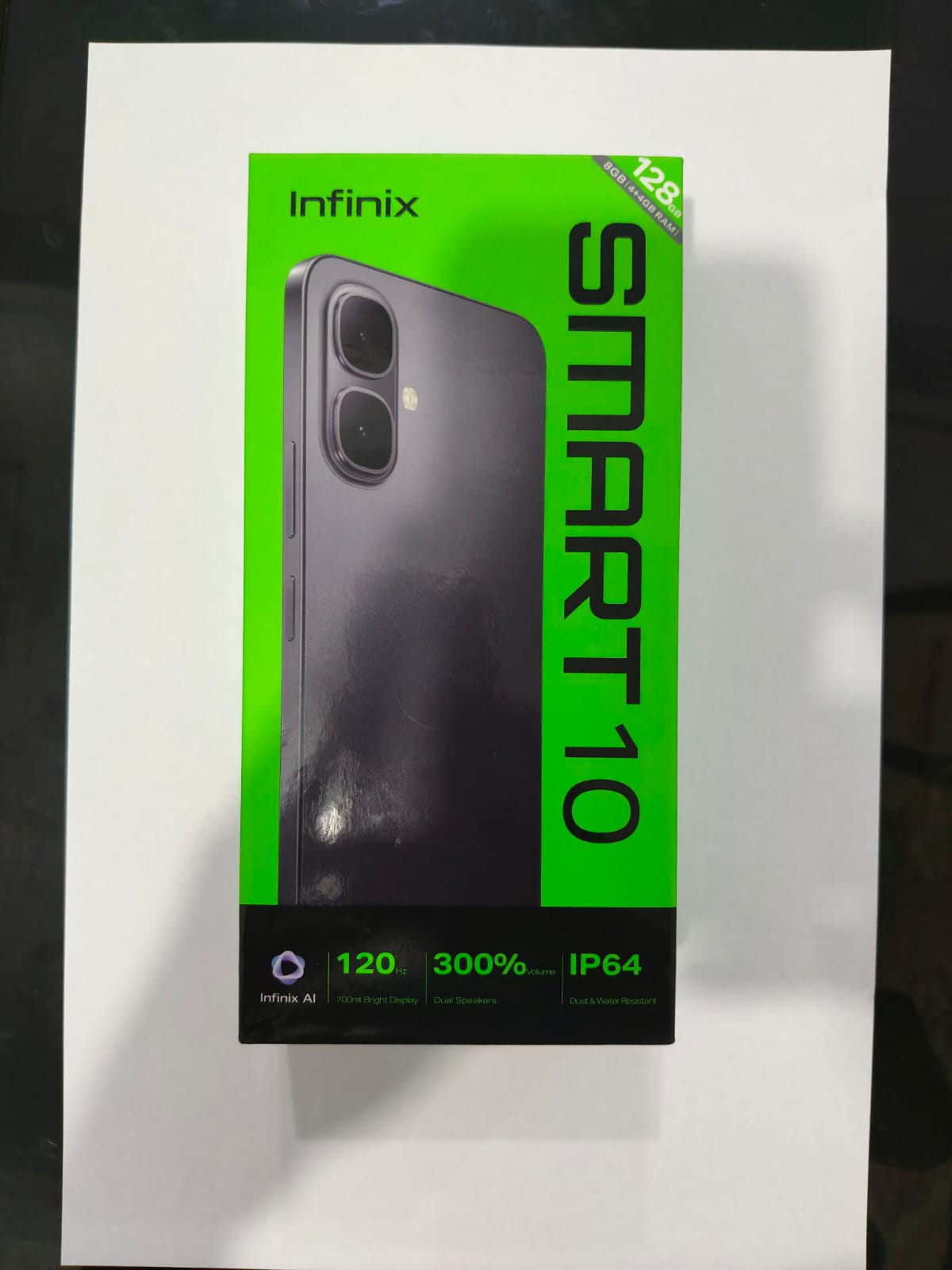 – 1 unit Handphone Infinix Smart 10 beserta kotaknya