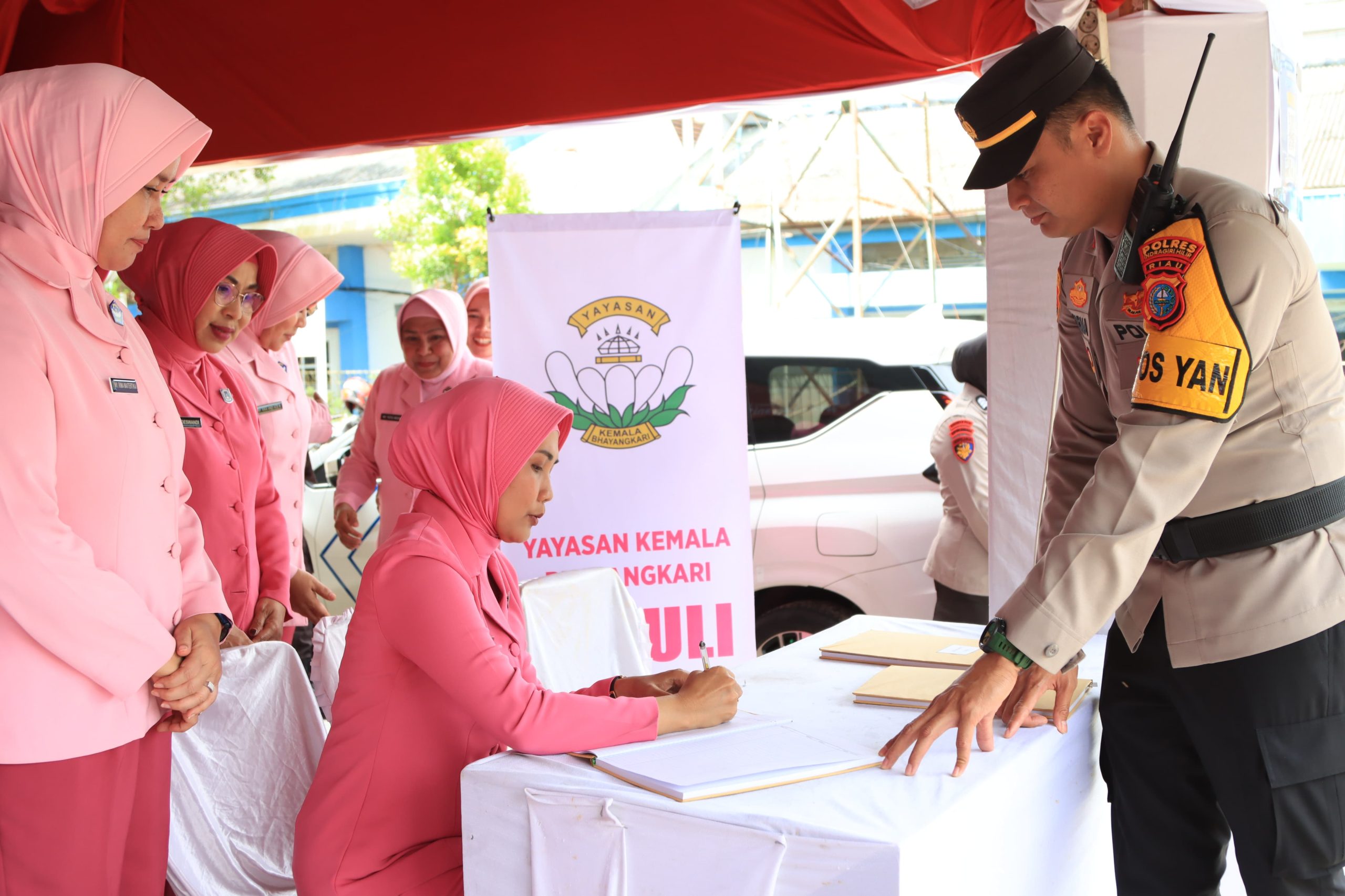 Sebagai bentuk kepedulian dan apresiasi atas dedikasi petugas, Bhayangkari Cabang Indragiri Hilir menyerahkan bingkisan berupa makanan ringan serta obat-obatan kepada personel yang bertugas di Pos Terpadu dan Pos Pelayanan Nataru.