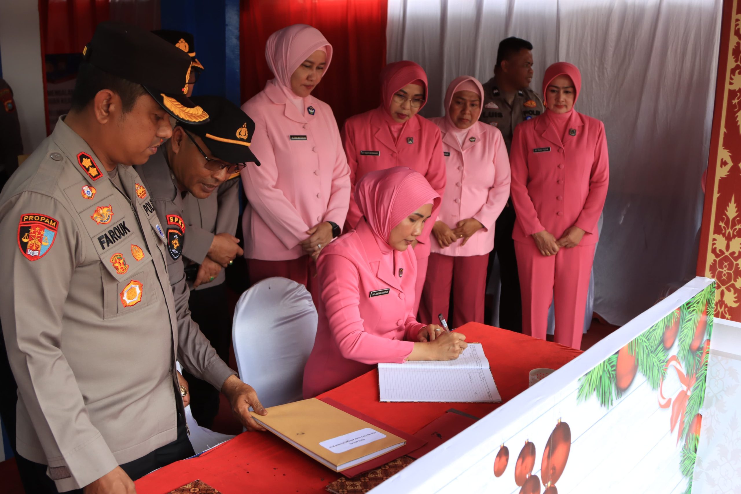 Kami mengunjungi dua pos ini untuk memberikan semangat dan dukungan kepada para petugas yang sedang menjaga dan mengawal perayaan Natal dan Tahun Baru 2026,” ujar Ny. Andini Farouk.