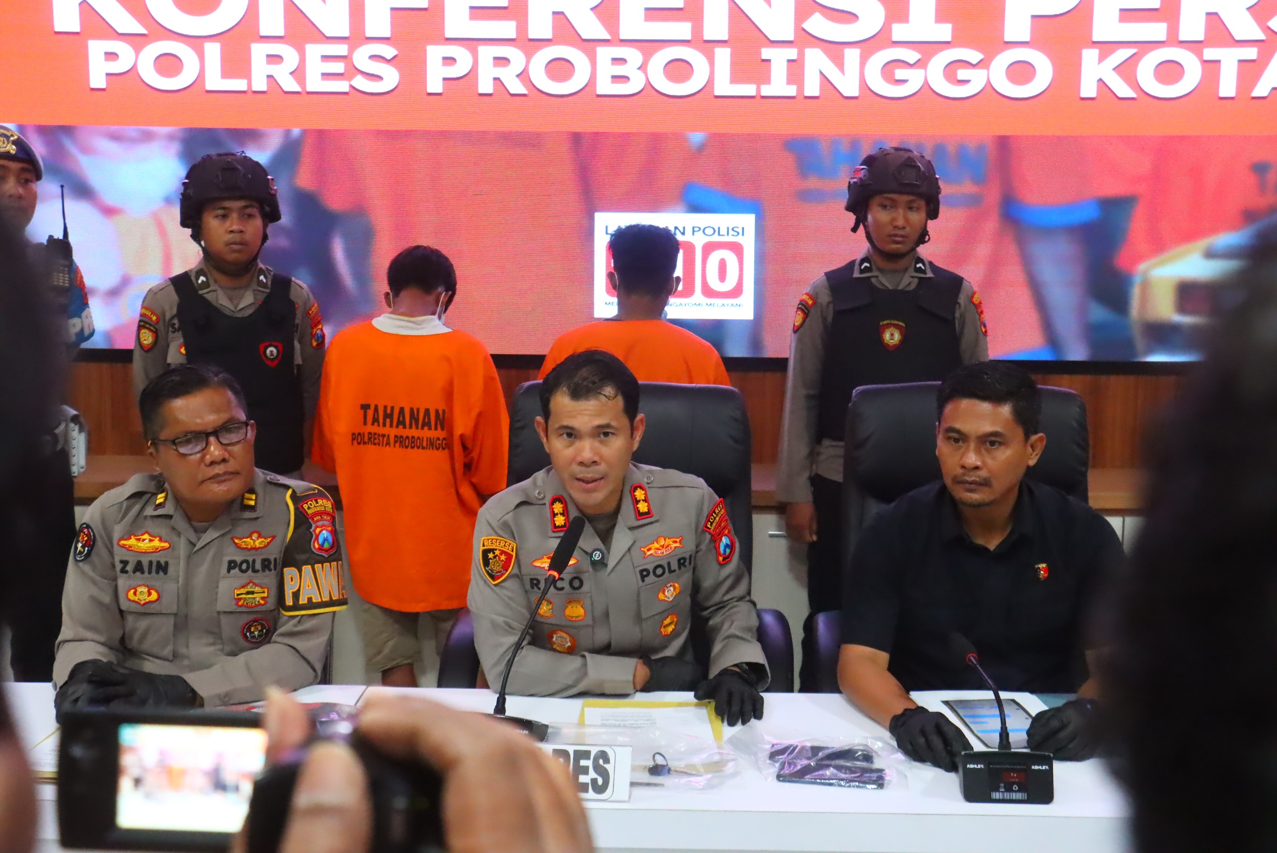Kapolres Probolinggo Kota AKBP Rico Yumasri, S.I.K., M.I.K. menjelaskan dalam konferensi pers ungkap kasus, bahwa telah melakukan penangkapan terhadap dua orang atas kasus tersebut, selasa (11/11/25).