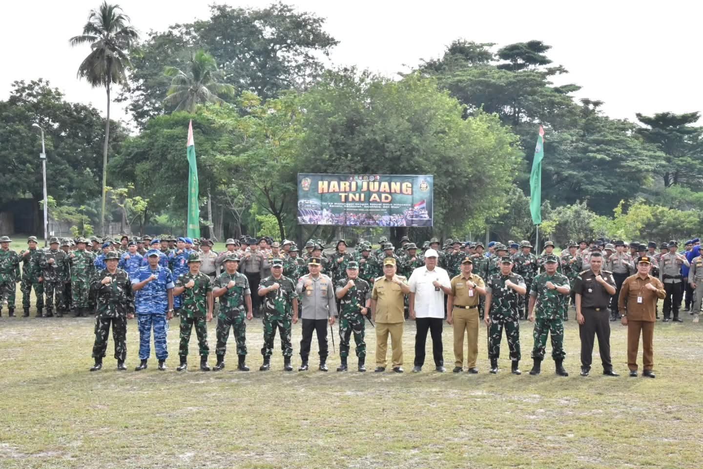 Komandan Korem 031/WB Brigjen TNI Jarot Suprihanto Dampingi Pangdam XIX/Tuanku Tambusai dalam acara Upacara Karya Bakti menyambut Hari Juang TNI AD Tahun 2025 yang berlangsung di Lapangan Halypad Gubernur Riau Pekanbaru, 8 Desember 2025.