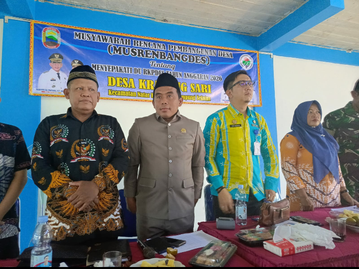 Musrinbang itu Desa itu Pemerintah Desa Kerawang sari melaporkan hasil penggunaan dana Desa yang sedang berjalan dan menyepakati Rencana Kegiatan Pembangunan tahun 2026 yang akan datang.