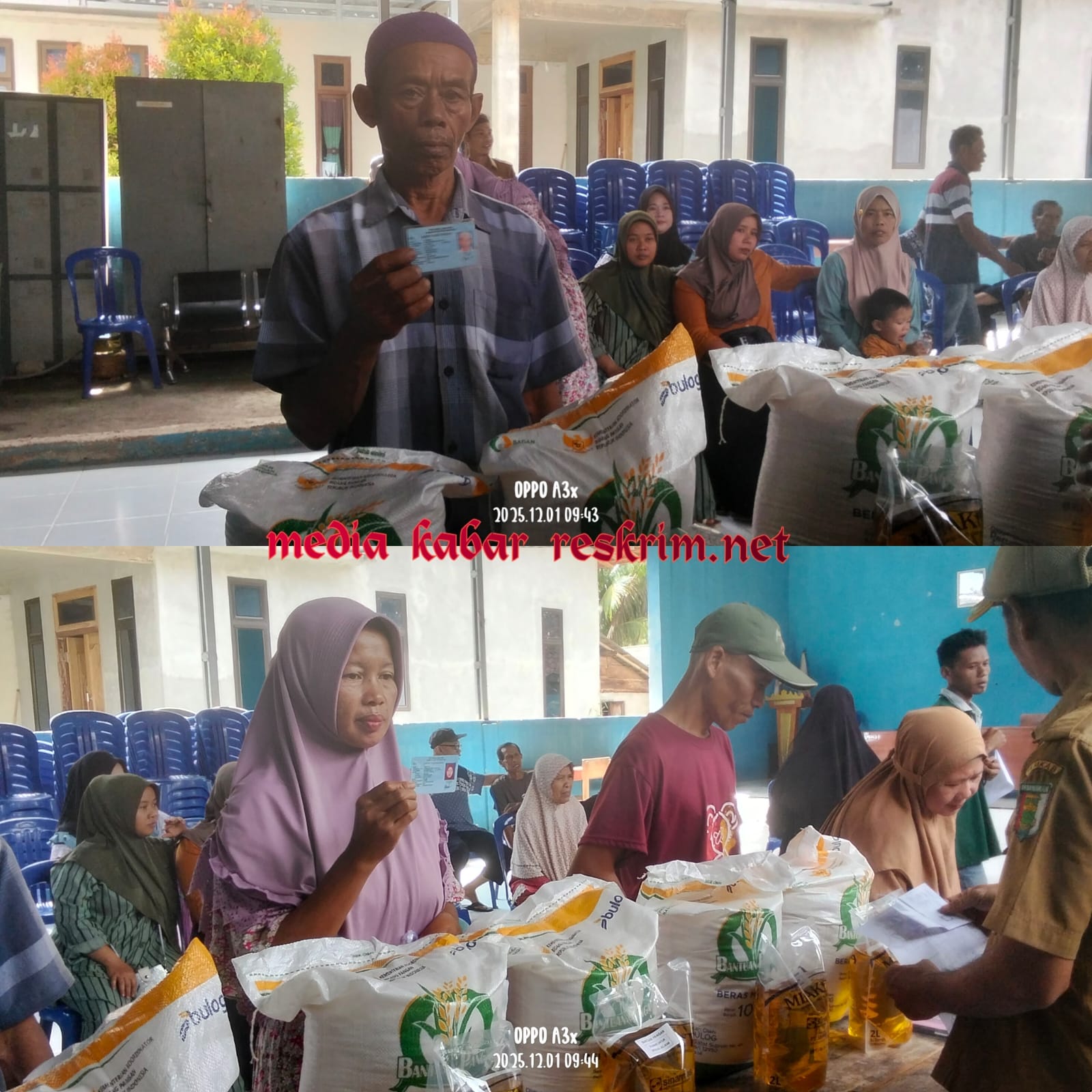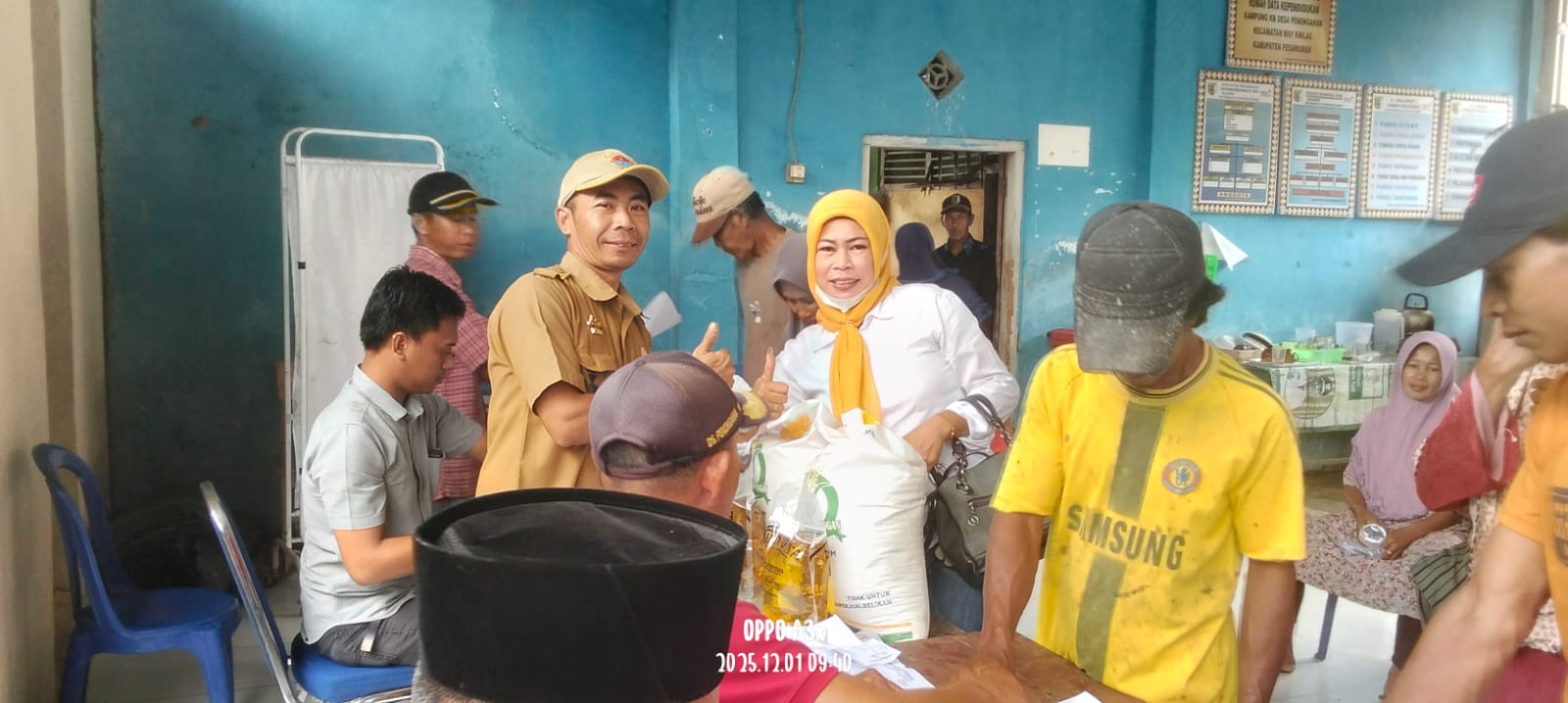 Pemerintah desa penengahan, kecamatan way khilau kabupaten pesawaran lampung, Menyalurkan bantuan berupa beras dan minyak, periode november desember tahun anggaran 2025 kepada warga sebanyak 308 KK, yang bertempatan di kantor desa penengahan, 01/11/2025.