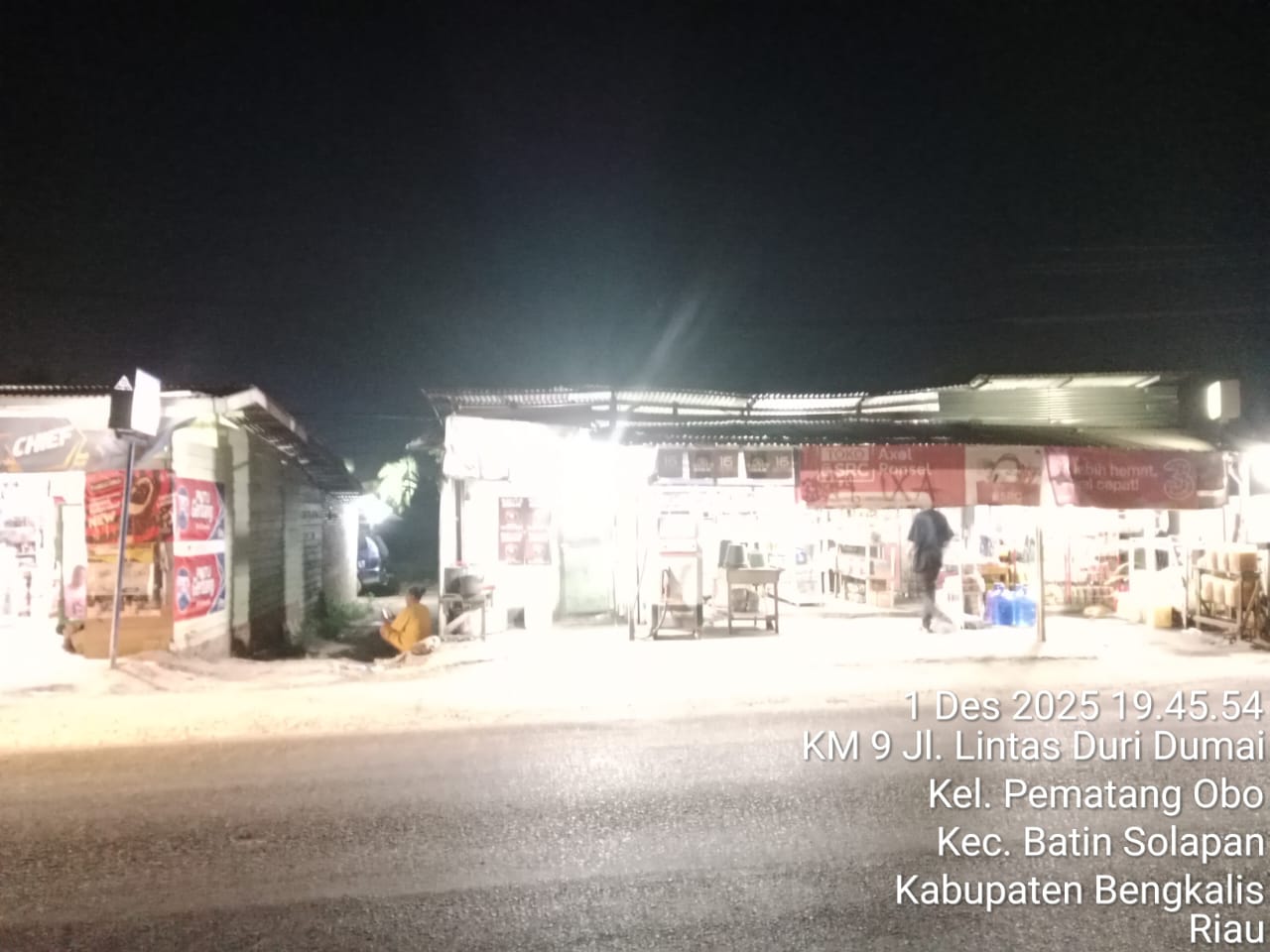 Foto kedua, yang direkam lebih awal pada 21 November 2025 pukul 14.07 WIB, menunjukkan markas operasi yang lebih tersembunyi namun tak kalah masif, di Jalan Duri – Dumai Bumbung.