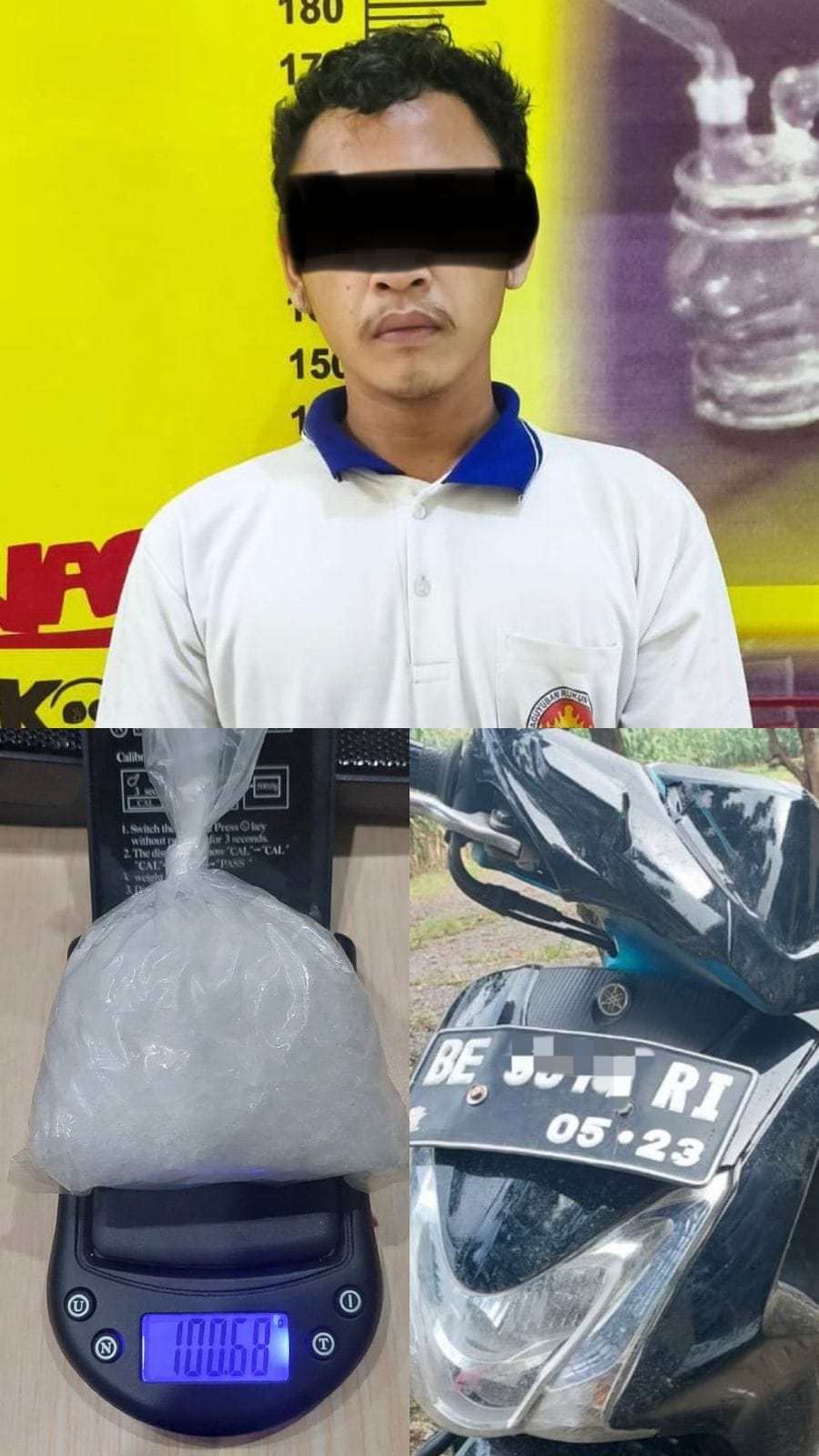 Dalam pengungkapan tersebut, petugas mengamankan seorang pria berinisial APW (28), warga Kota Bandar Lampung, yang diduga kuat berperan sebagai pengedar. Penangkapan dilakukan sekitar pukul 17.00 WIB saat pelaku melintas di jalur utama yang dikenal sebagai akses vital penghubung antarwilayah dengan mobilitas masyarakat yang cukup tinggi.