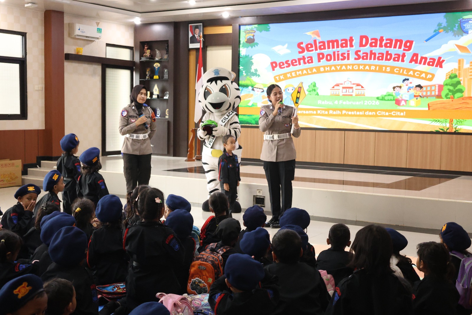 Polresta Cilacap menjadi ruang edukasi bagi anak-anak dari TK Bhayangkari melalui kegiatan kunjungan dan pembelajaran terpadu yang digelar di Mapolresta Cilacap, Rabu (4/2/2026).