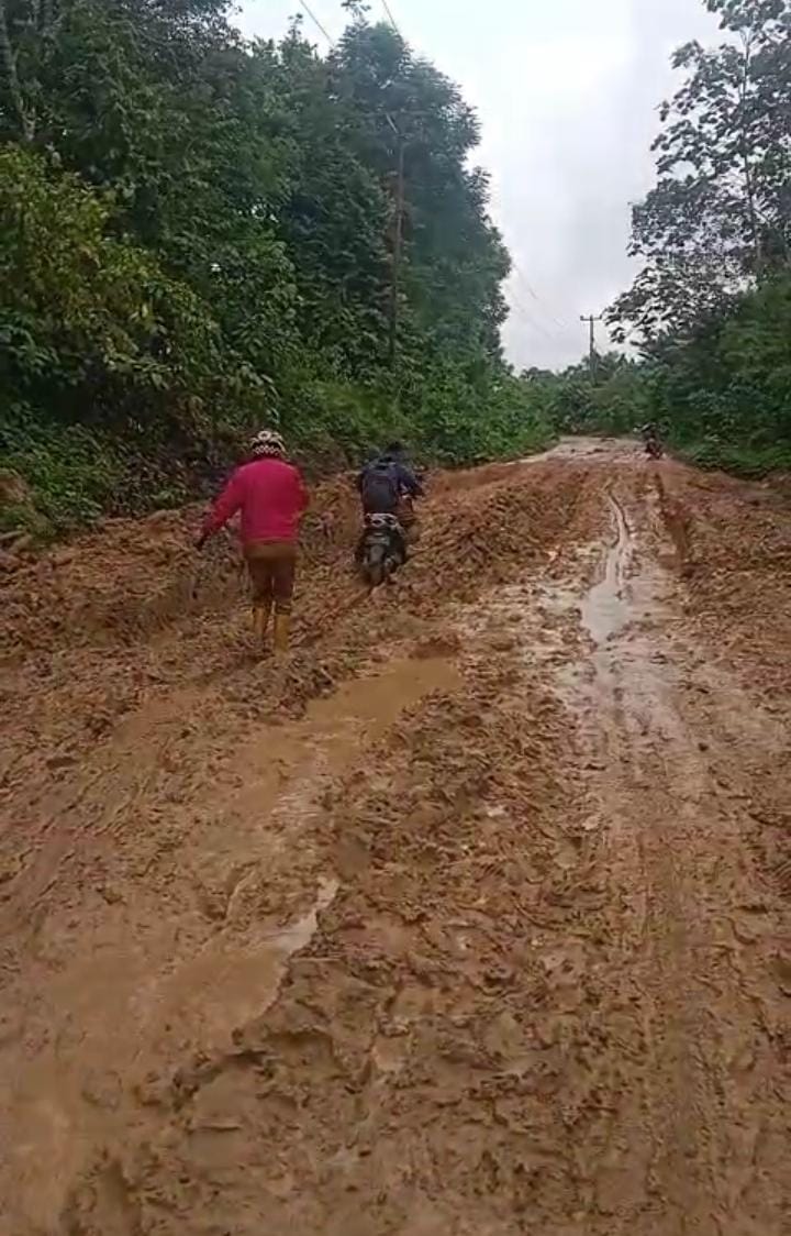 Pasalnya jalan tersebut sudah di perbaiki namun sekarang jalannya kembali berlumpur sehingga mengakibatkan motor dan mobil yang melintas jalan ini menjadi terhambat.