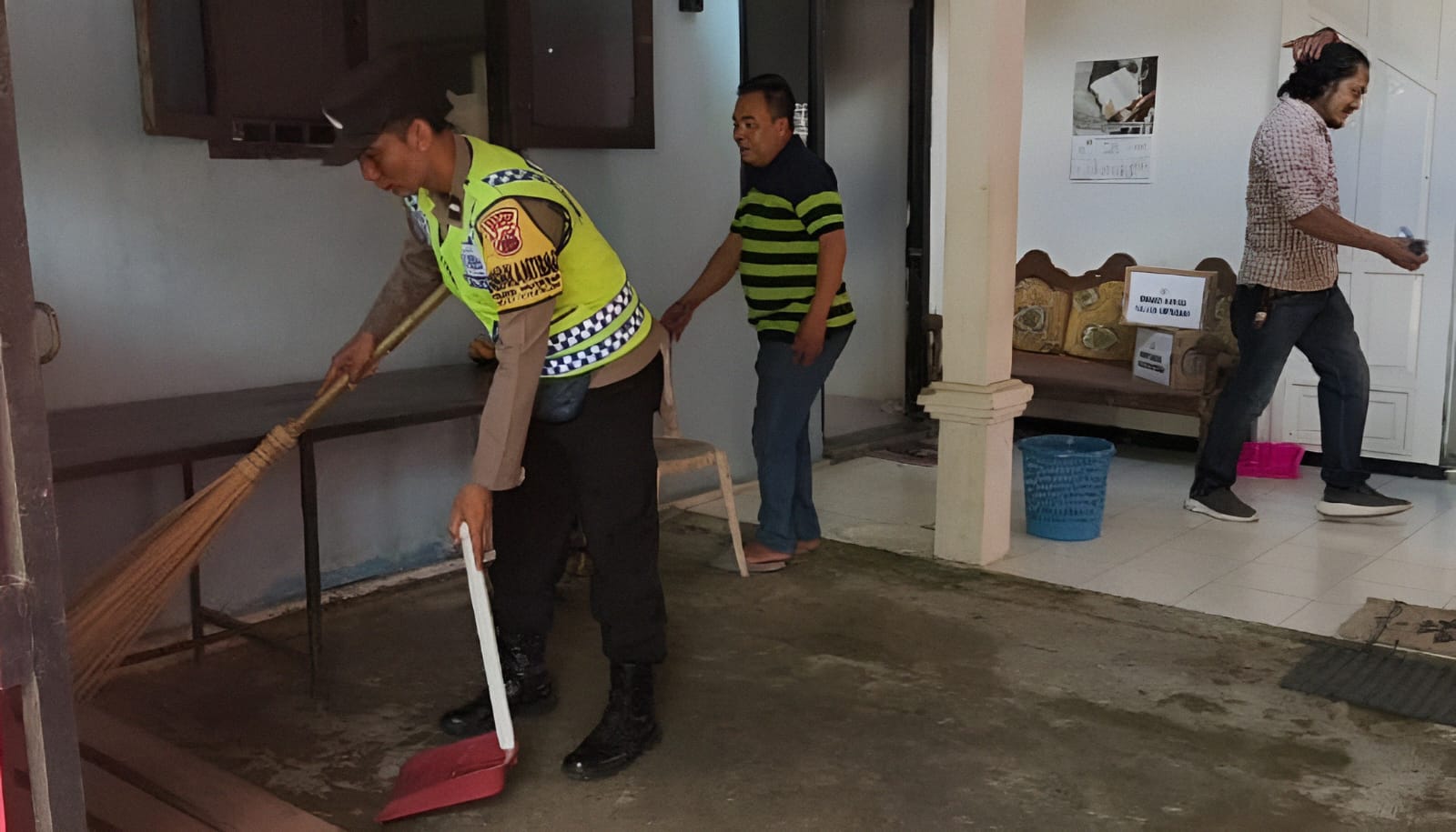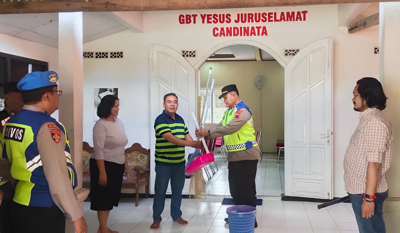 Dalam kegiatan tersebut, jajaran Polsek Kutasari menyerahkan bantuan berupa paket sembako dan alat kebersihan kepada pihak gereja. Selain itu, usai silaturahmi personel Polsek Kutasari melaksanakan kerja bakti membersihkan gereja dan lingkungannya.