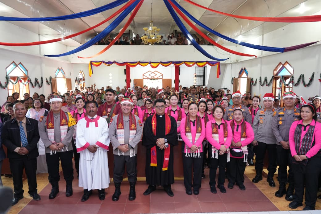 Ibadah Natal berlangsung dalam suasana penuh kehangatan, diisi dengan puji-pujian, persembahan dari Polwan, serta momen penyalaan lilin Natal yang sarat makna sebagai simbol terang dan harapan di tengah kegelapan.