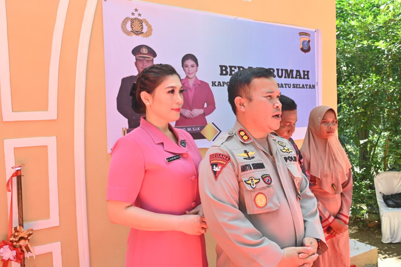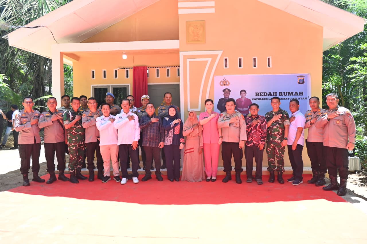 Kapolres Labusel, AKBP Aditya SP Sembiring Muham, meresmikan Program Bedah Rumah. Secara simbolis Kapolres menyerahkan Kunci Rumah kepada Junaedi dan Keluarga, Warga Dusun Pasar 12, Desa Aek Batu, Kecamatan Torgamba, Kabupaten Labusel, Sabtu (01/11/2025).