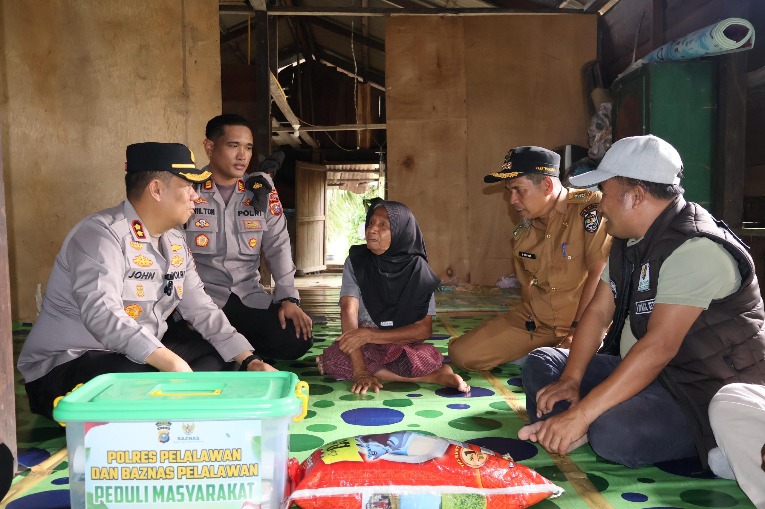 Kapolres Pelalawan, AKBP John Louis Letedara, S.I.K, bersama Pihak Baznas Kab. Pelalawan, menyalurkan bantuan sosial kepada masyarakat miskin di Desa Rantau Baru, Kec. Pangkalan Kerinci, Kab. Pelalawan, pada Selasa, 13 Januari 2026. Bantuan ini diberikan kepada 20 orang masyarakat miskin yang terdampak akibat akses jalan terendam banjir.