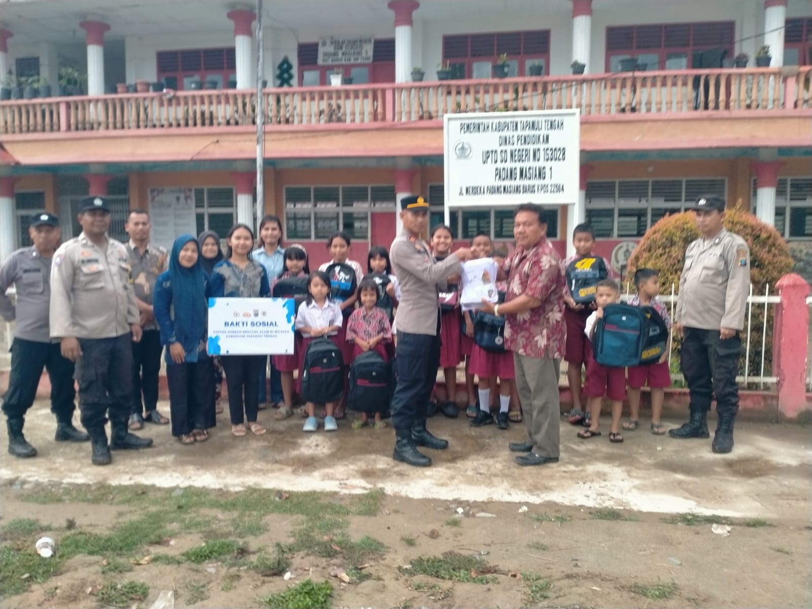 SDN 153028 Padang Masiang 1 memperoleh 97 Paket Tas Sekolah, 97 Paket Buku dan Alat Tulis, 48 Stel Seragam Merah Putih untuk Siswa Laki-laki, dan 49 Stel Seragam Merah Putih untuk Siswa Perempuan.