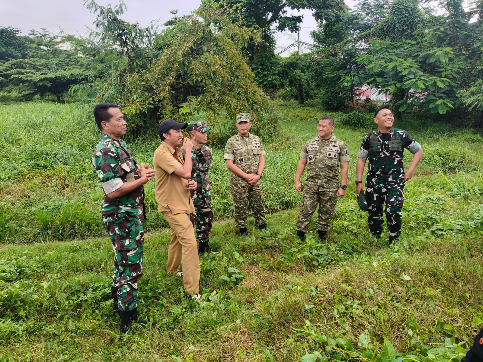 Kasrem beserta rombongan meninjau kondisi lahan, aksesibilitas, dan potensi lingkungan sekitar untuk mendukung operasional gerai yang direncanakan.