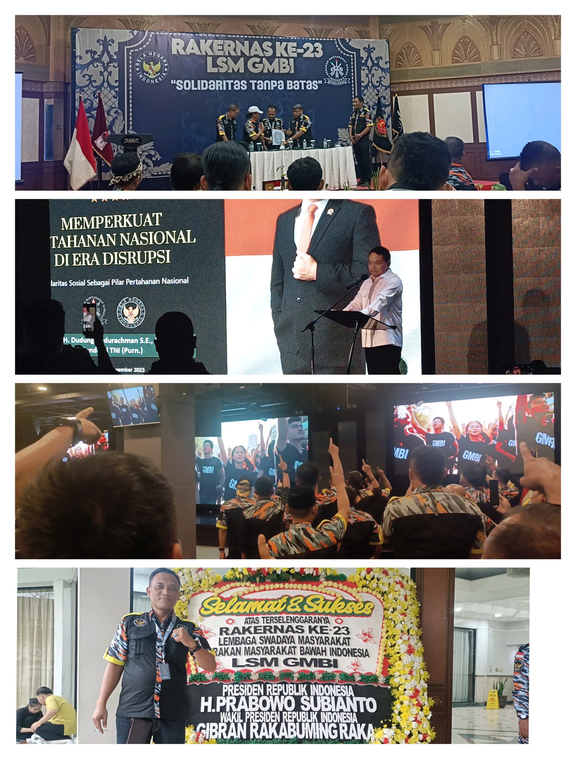 Ketua Distrik Lembaga Swadaya Masyarakat Gerakan Masyarakat Bawah Indonesia (LSM GMBI) Kabupaten Lampung Timur, . Fikri, dan sekretaris taoufan jaya negara turut menghadiri Rapat Kerja Nasional (Rakernas) ke-23 LSM GMBI yang berlangsung di Hotel Grand Pasundan, Kota Bandung, Jawa Barat, pada 10 s_d 12 November 2025.