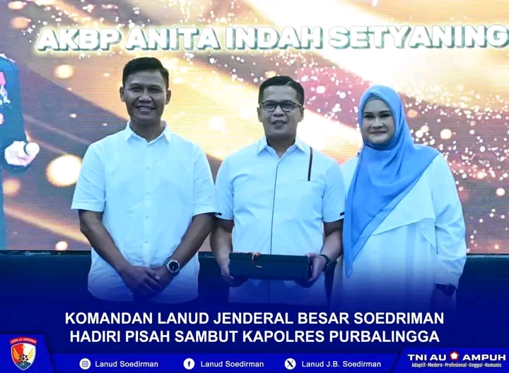 Komandan Lanud Jenderal Besar Soedirman Letkol Pnb Ali Purwoko, S.Sos., menghadiri acara pisah sambut Kapolres Purbalingga dari AKBP Achmad Akbar, S.I.K., M.Si., kepada AKBP Anita Indah Setyaningrum, S.I.K., M.H. Kegiatan berlangsung di Purbasari Pancuran Mas, Purbalingga, Senin (12/01/2026).