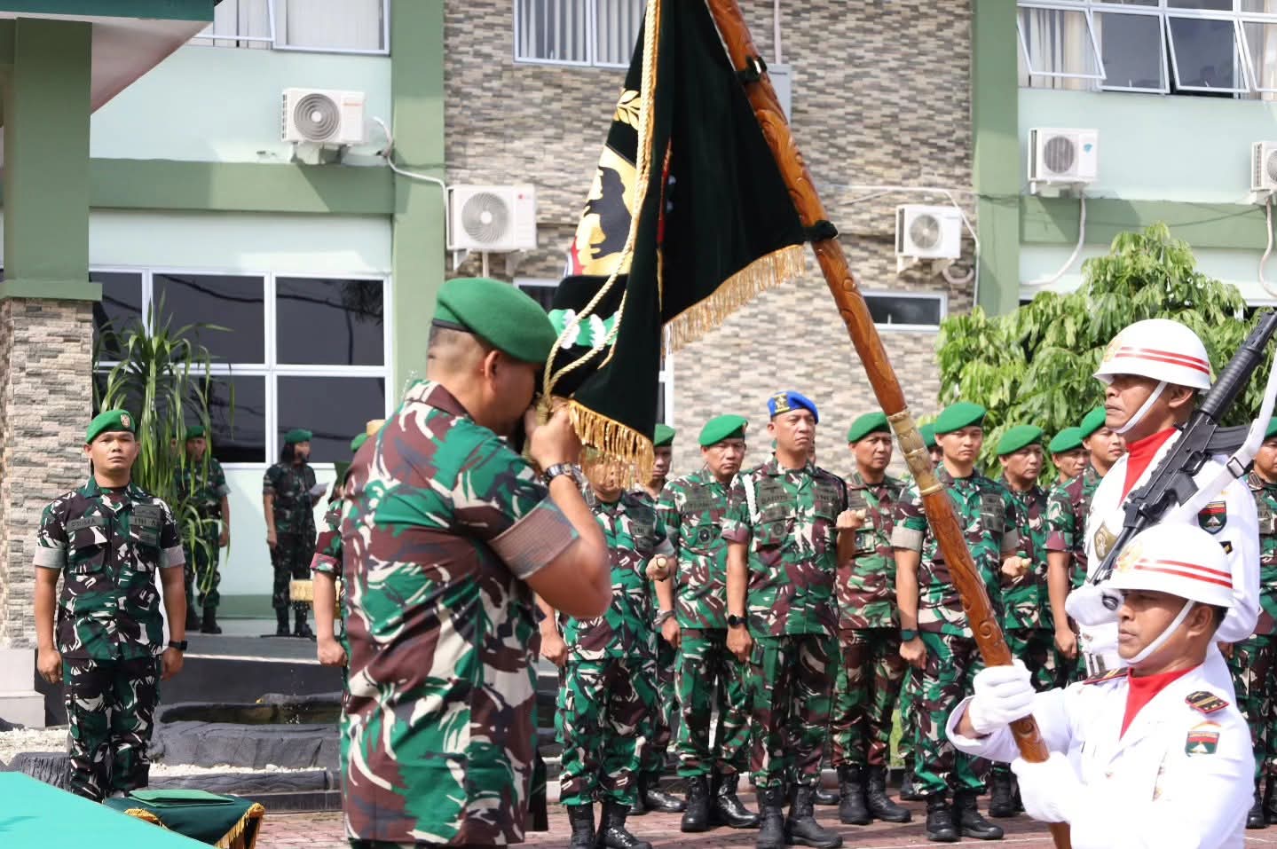 Korem 031/Wira Bima menggelar acara tradisi penyambutan Komandan Korem yang baru di Makorem 031/Wirabima, Jl. A. Yani, Pekanbaru. Kedatangan Brigjen TNI Dr. Agustatius Sitepu, S.Sos., M.Si., M.Han. disambut dengan khidmat melalui rangkaian prosesi adat Melayu dan militer.