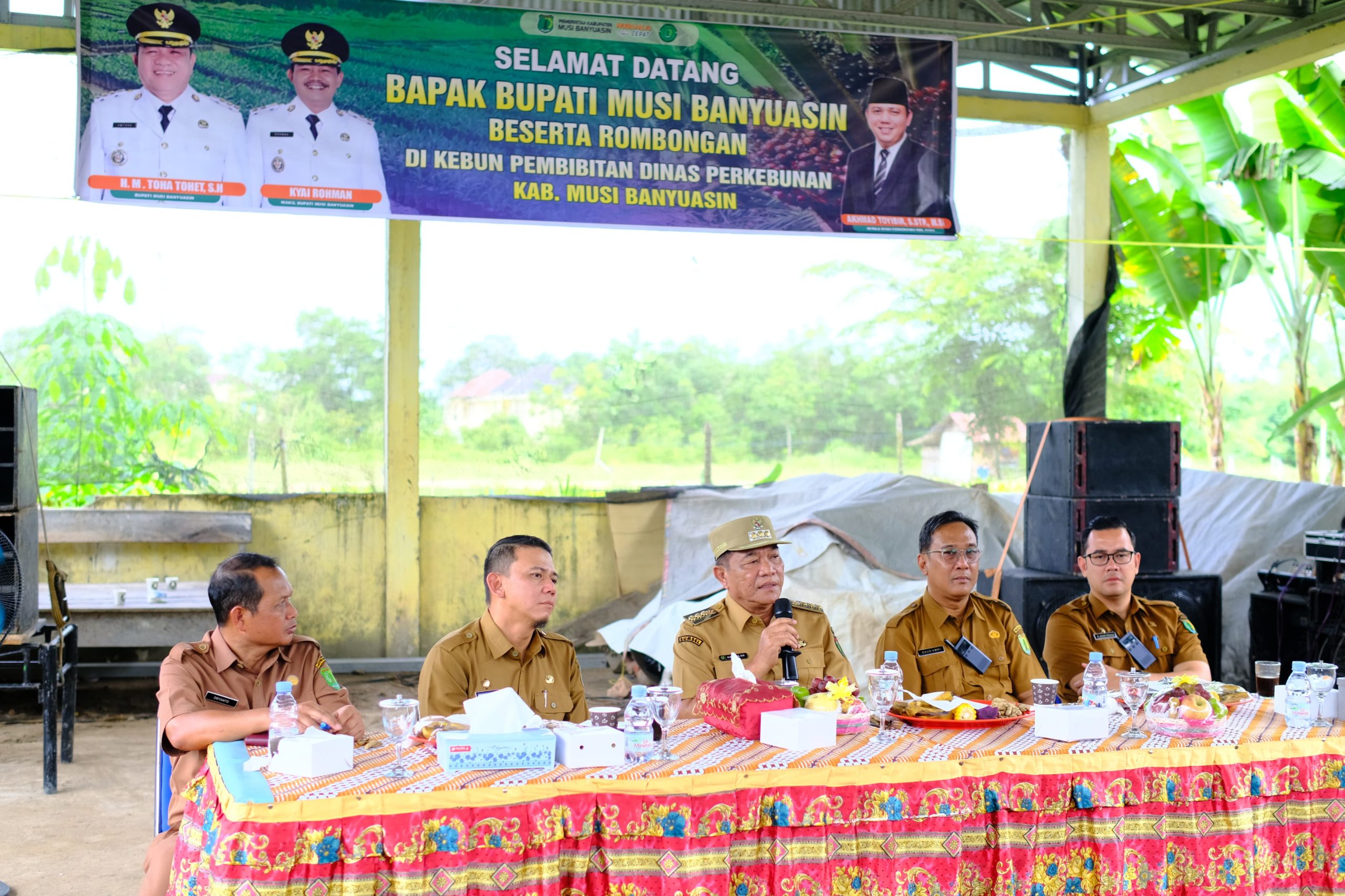 Di tengah upaya meningkatkan kesejahteraan petani, Bupati Musi Banyuasin H M Toha Tohet SH turun langsung ke lapangan meninjau Kebun Pembibitan Dinas Perkebunan Muba di Km 11 Kelurahan Soak Baru, Kecamatan Sekayu, Selasa (21/10/2025).
