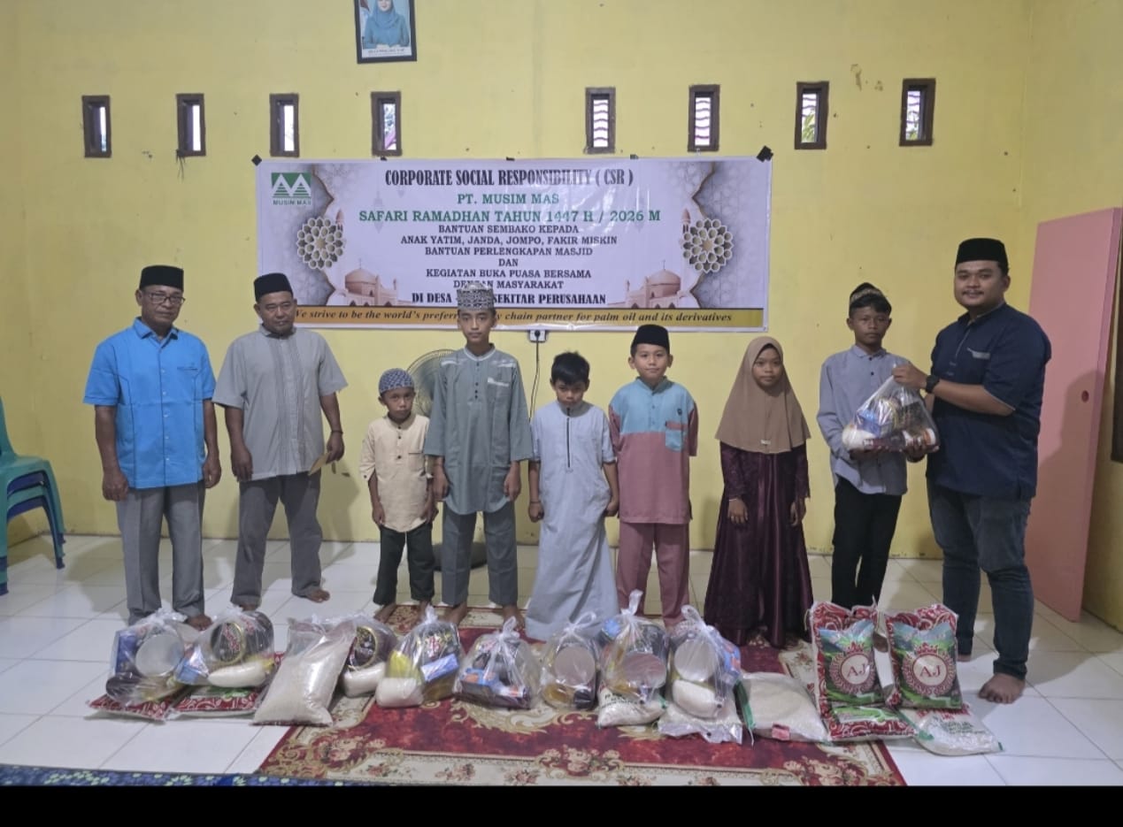 Dalam rangka kegiatan Safari Ramadhan, PT Musim Mas menyalurkan bantuan sosial kepada anak yatim dan orang tua jompo di Kelurahan Sorek Satu. Sebanyak 60 paket sembako serta perlengkapan masjid diserahkan kepada para penerima manfaat.