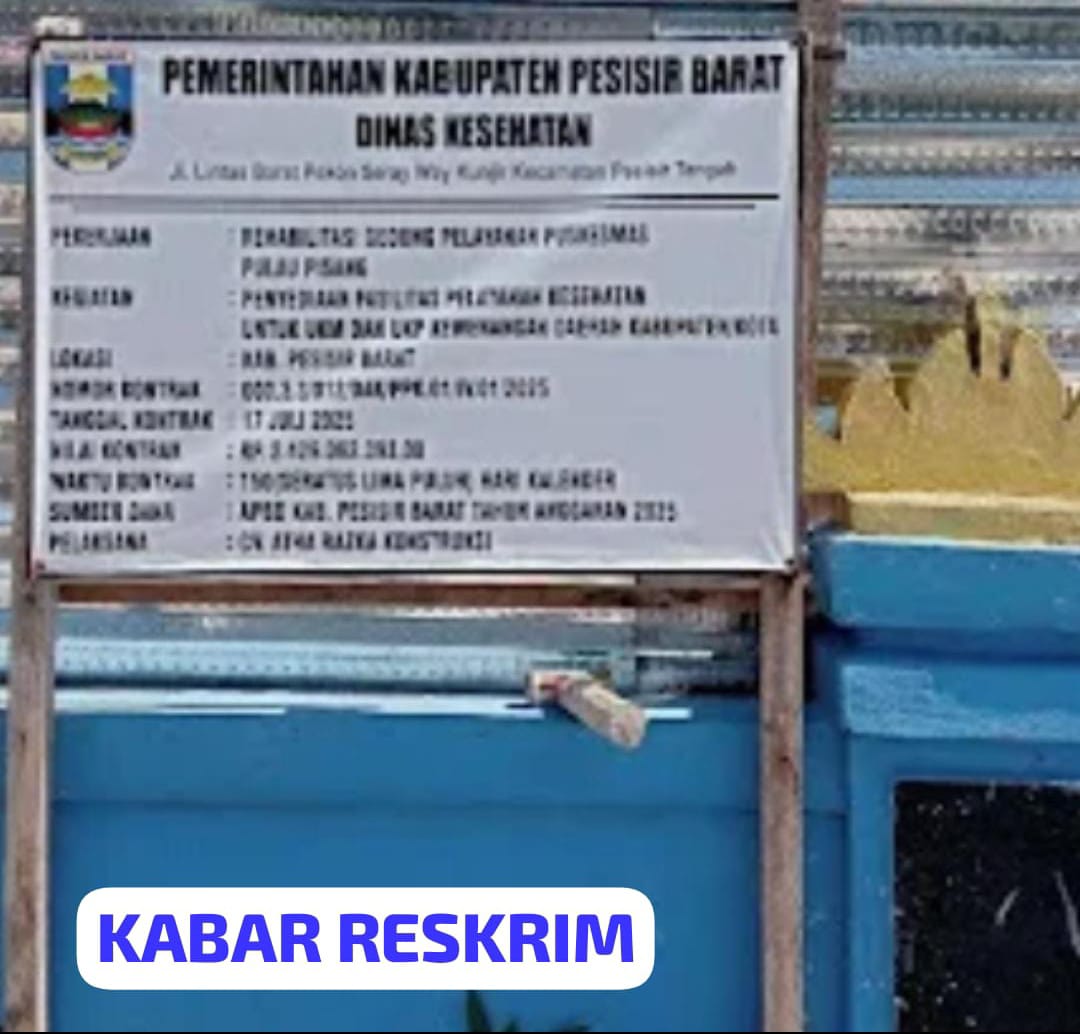 Pemerintah Kabupaten Pesisir Barat (Pesibar) Laksanakan Proyek Pembuatan Rehabilitasi Gedung pelayanan Kesehatan Masyarakat atau Rumah Sakit di Kecamatan Pulau Pisang yang hingga kini tidak ada tindak lanjut alias terbengkalai , pada minggu, 16 /11/2025.
