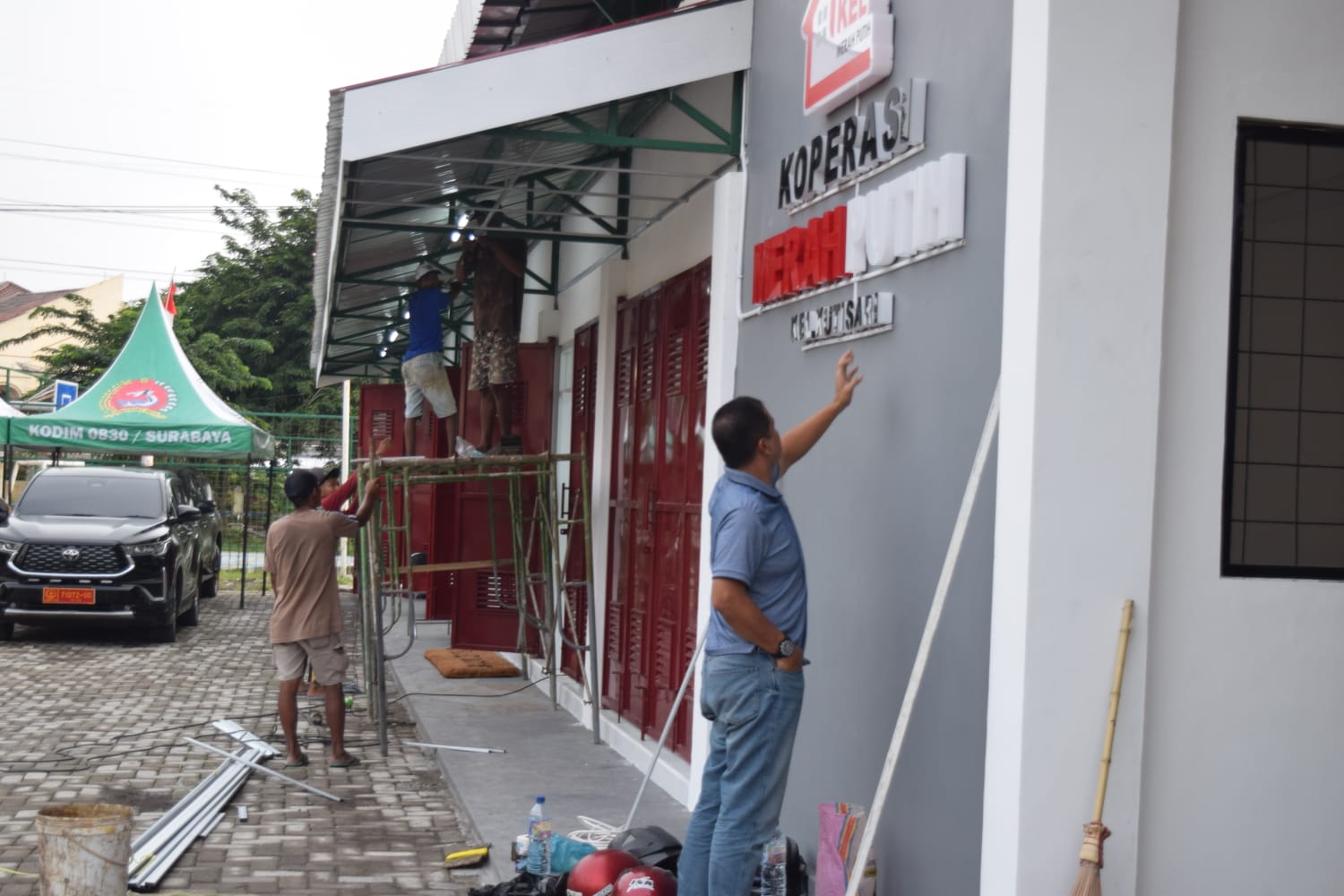 Komandan Korem (Danrem) 084/Bhaskara Jaya Brigjen TNI Danny Alkdrie mendampingi Panglima Komando Daerah Militer (Pangdam) V/Brawijaya Mayjen TNI Rudy Saladin dalam kunjungan kerja ke Koperasi Desa Kelurahan Merah Putih (KDKMP) Kutisari, Kecamatan Tenggilis Mejoyo, Kota Surabaya, Senin (16/2/2026).