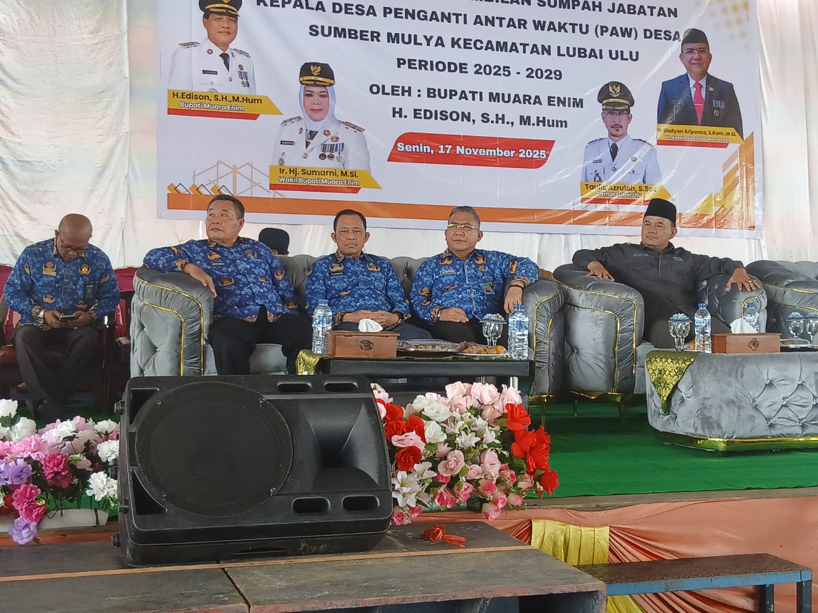 Hari pelantikan PAW kepala desa sumbermulya yang di lakukan pada tanggal 4 november 2025 di aula pasar desa sumbermulya yang di lantik oleh bupati muara enim bapak Haji Edison SH.MH.hum, pada kesempatan tersebut bapak bupati muara enim berpesan dengan tegas kepada kepala desa yang baru di lantik agar menjalankan tugasnya dengan baik serta taat dengan peraturan dan perundang-undangan yang berlaku di negara republik indonesia ini.