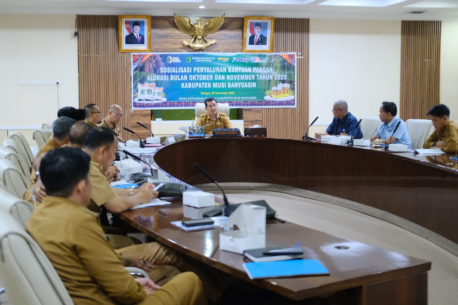 Pemerintah Kabupaten Musi Banyuasin (Muba) menggelar Sosialisasi Penyaluran Bantuan Pangan untuk alokasi Oktober–November 2025, bertempat di Ruang Rapat Serasan Sekate, Selasa (25/11/2025).