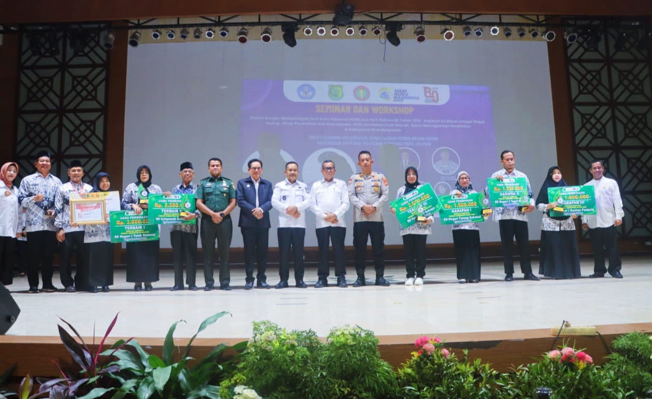 Sebagai bentuk penghargaan, Wakil Bupati Muba berkesempatan menyerahkan cinderamata kepada Pengurus PGRI Muba periode 2020–2025. Pada kesempatan yang sama juga diberikan beberapa penghargaan, antara lain, Penghargaan Apresiasi Guru Prima 2025, Penghargaan Sekolah Ramah Anak 2025 kepada SMPN 6 Sekayu, dan Penghargaan Sekolah Adiwiyata Kabupaten 2025 kepada SDN 1 Teluk Kemang, MI Istiqomah Sekayu, SDN 10 Sekayu, SDN Talang Sahabat, SDN 3 Tegal Mulyo, dan SDN 1 Rantau Panjang.