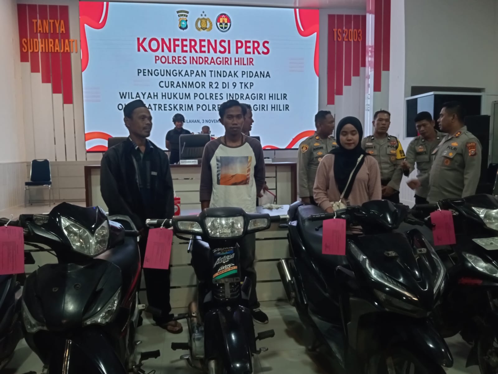 Polres Indragiri Hilir berhasil mengungkap kasus pencurian kendaraan bermotor (curanmor) yang terjadi di sembilan tempat kejadian perkara (TKP) berbeda di wilayah hukum Polres Inhil. Dari hasil penyelidikan, polisi mengamankan tiga orang pelaku, dua di antaranya masih di bawah umur.
