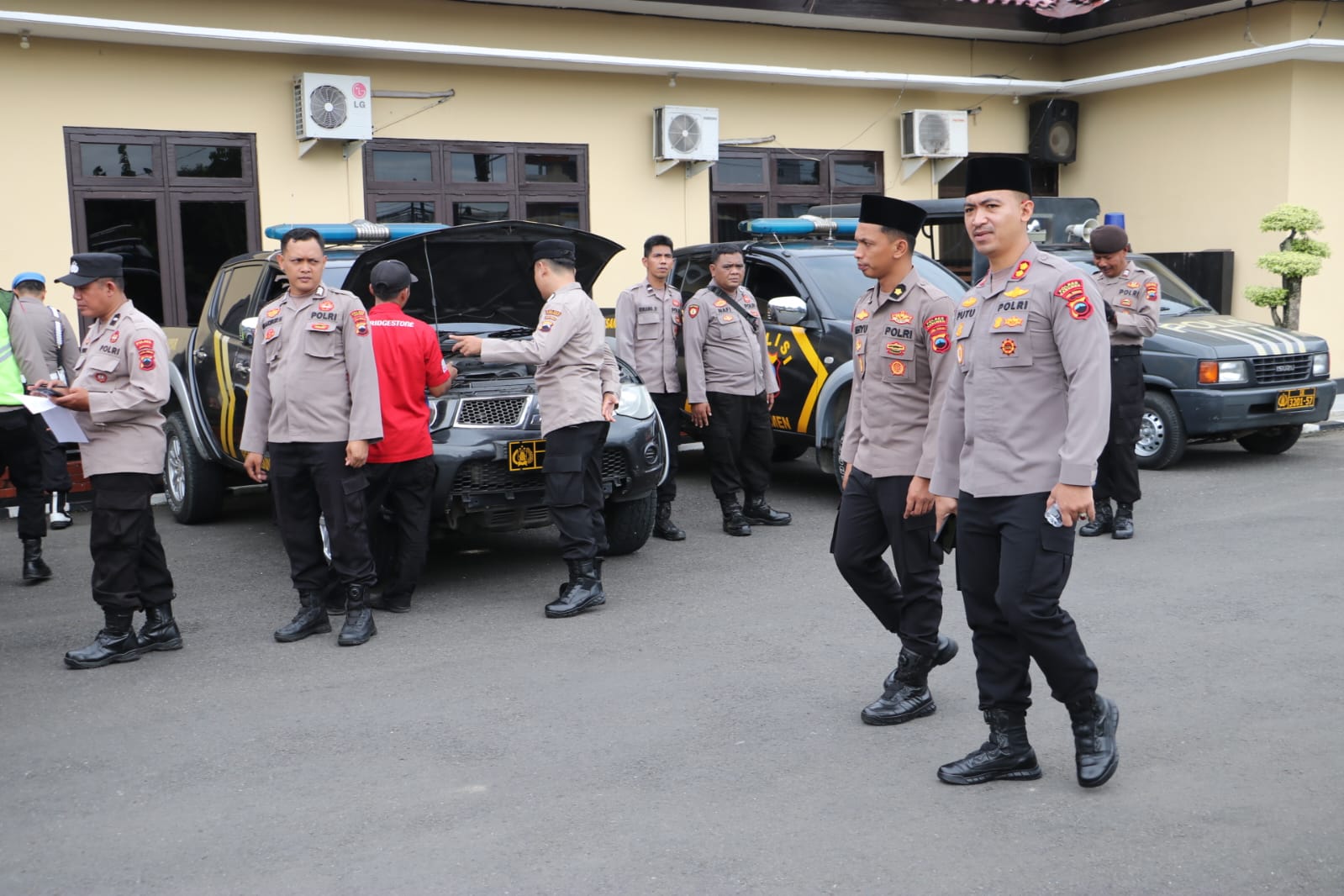 Kendaraan patroli mobil backbone milik Polsek jajaran dicek satu per satu oleh tim. Pemeriksaan meliputi kondisi mesin, alat penerangan, sirine, kondisi ban, hingga kelaikan kendaraan secara keseluruhan.