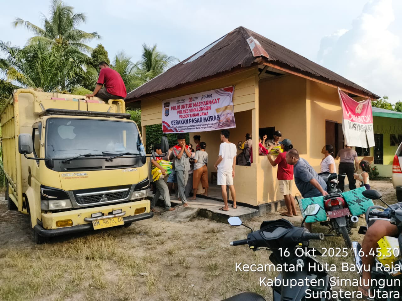 Acara membantu Masyarakat menghadapi fluktuasi harga pangan, Polres Simalungun bersinergi dengan Perum Bulog Cabang Pematang Siantar menggelar program Gerakan Pasar Murah di Dua Kecamatan, Kabupaten Simalungun, Kamis (16/10/2025).
