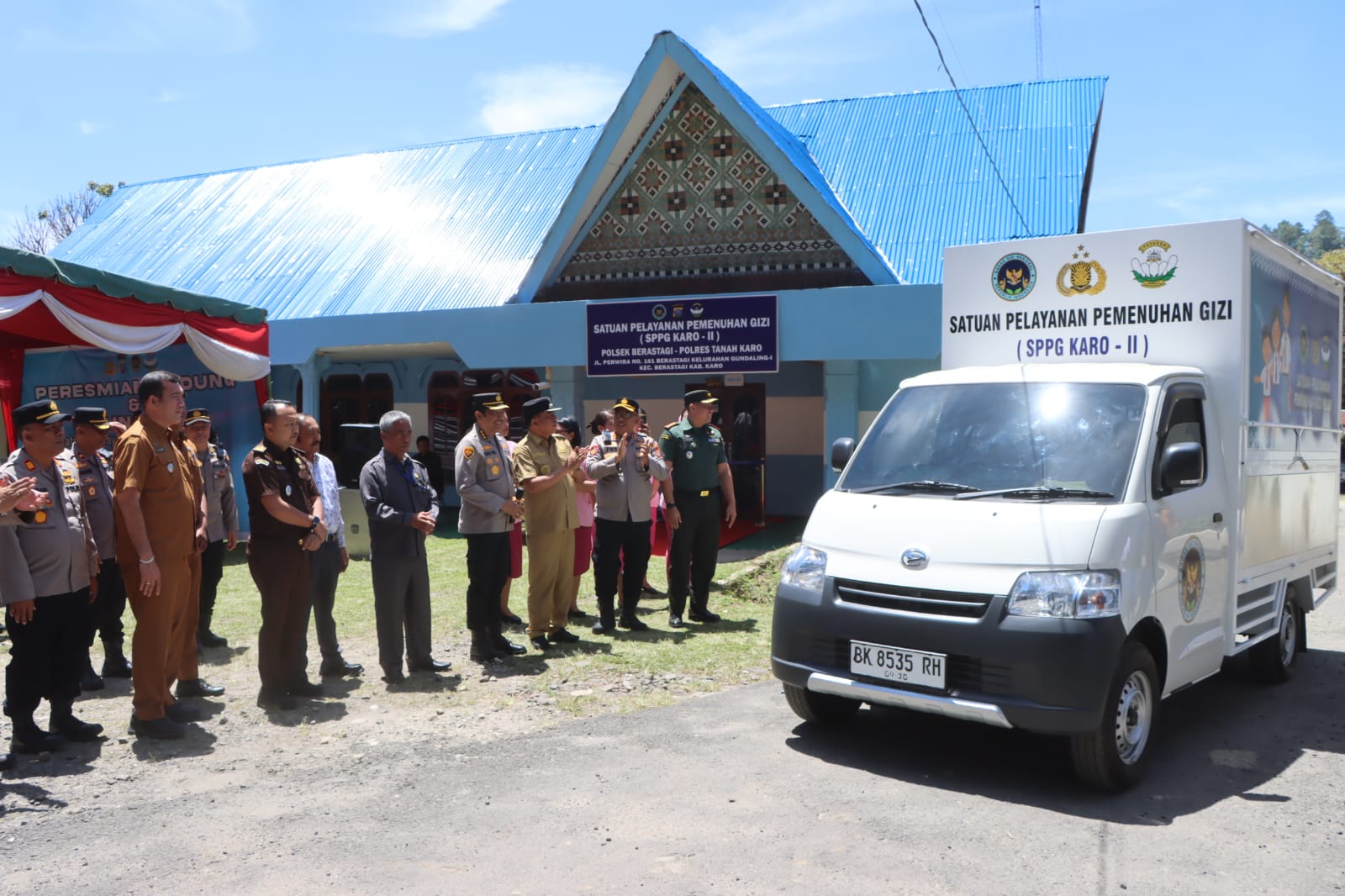 Wujud sinergi Polri dan Pemda dukung Program Makan Siang Bergizi untuk Anak Sekolah, Senin (27/10/2025), bertempat di Jl. Perwira No. 161, Kelurahan Gundaling I, Kecamatan Berastagi, Polres Tanah Karo melaksanakan Peresmian Gedung dan Launching Satuan Pelayanan Pemenuhan Gizi (SPPG) KARO-II Polsek Berastagi Polres Tanah Karo.