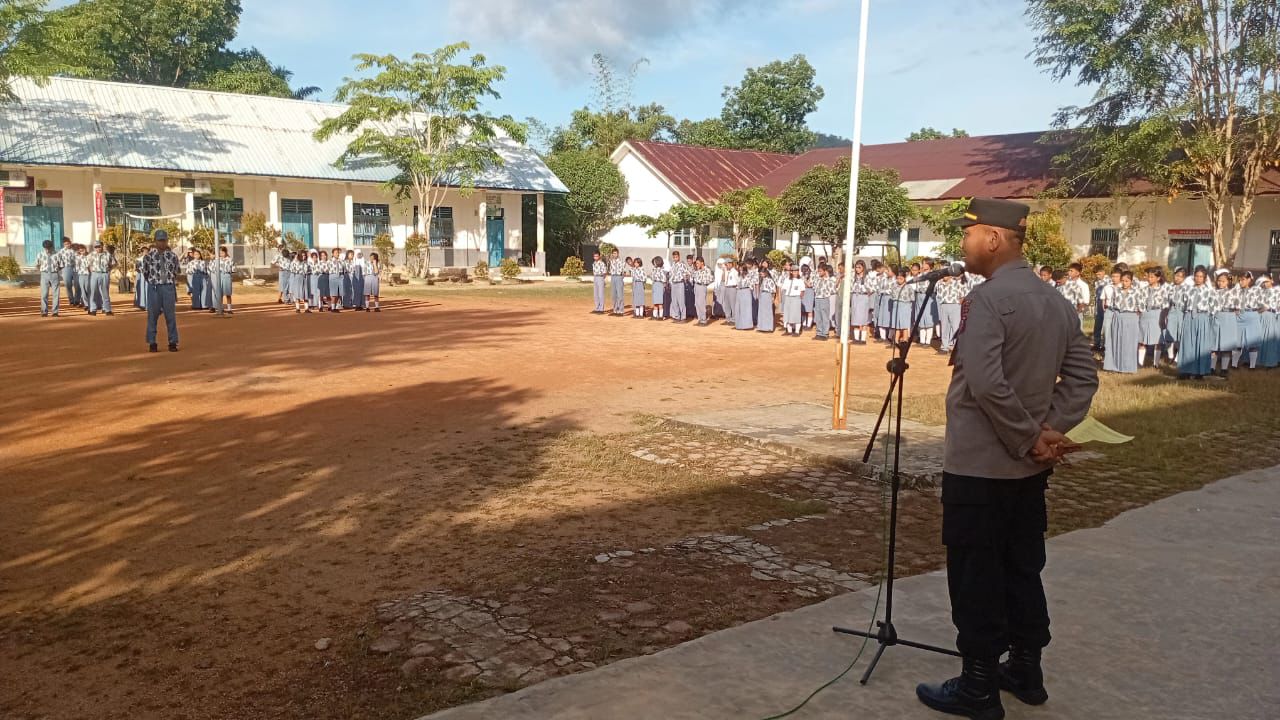 Polres Tapanuli Tengah (Tapteng) gelar program ‘Police Go To School’ di SMAN 2 Tukka, Kamis (18/9/2025). Kegiatan ini untuk mengedukasi siswa tentang bahaya kenakalan remaja, termasuk tawuran, penyalahgunaan narkoba, dan perundungan.