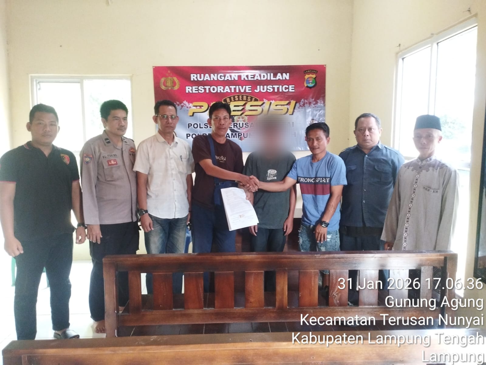 Polsek Terusan Nunyai menerapkan pendekatan Restorative Justice dalam penanganan perkara tindak pidana pencurian yang dilakukan oleh seorang anak di bawah umur berinisial AW. Langkah ini diambil sebagai bentuk penegakan hukum yang mengedepankan keadilan restoratif, kepentingan terbaik bagi anak, serta pemulihan hubungan antara pelaku dan korban.Sabtu 31/1/2026.