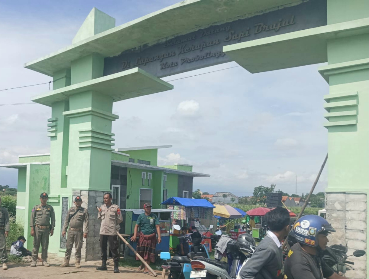 Jajaran Polsek Wonoasih bersama personel Koramil Wonoasih dan Satpol PP melaksanakan kegiatan pengamanan masyarakat dalam acara Kerap Sapi Brujul yang berlangsung pada Minggu (16/11/2025) di Jalan Kiyai Syafi’i, Kelurahan Jrebeng Kidul, Kecamatan Wonoasih, Kota Probolinggo.