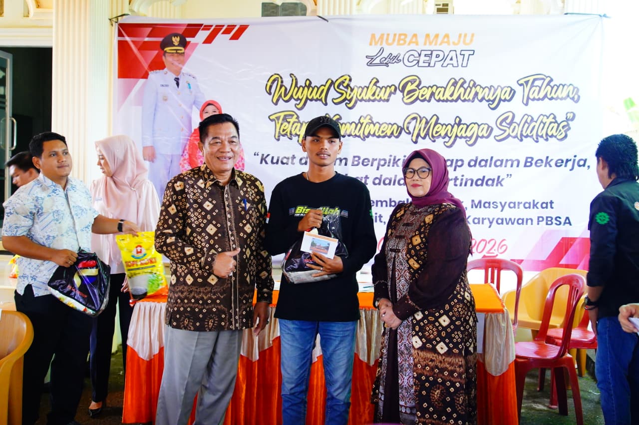 Dalam kegiatan itu, Bupati Toha didampingi sang istri tercinta yang juga Ketua TP PKK Kabupaten Muba, Hj Patimah Toha, bersama anggota keluarga. Dengan penuh kehangatan, paket sembako diserahkan langsung kepada 50 warga satu per satu.