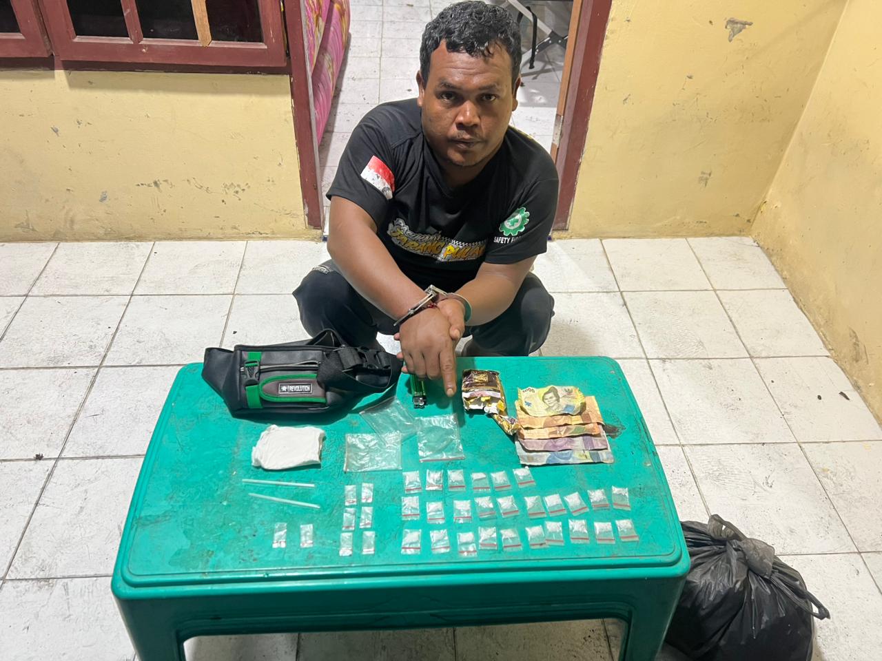 Pelaku diamankan, Kamis (01/01/2026), sekira pukul 21.30 WIB, di depan Musholla Desa Sikapas. Dari penggeledahan Petugas kepada Pelaku, ditemukan Puluhan Paket Narkotika, Jenis Sabu siap edar, seberat 13 Gram, serta sejumlah barang bukti lainnya yang diduga berkaitan dengan aktivitas Peredaran Narkotika.