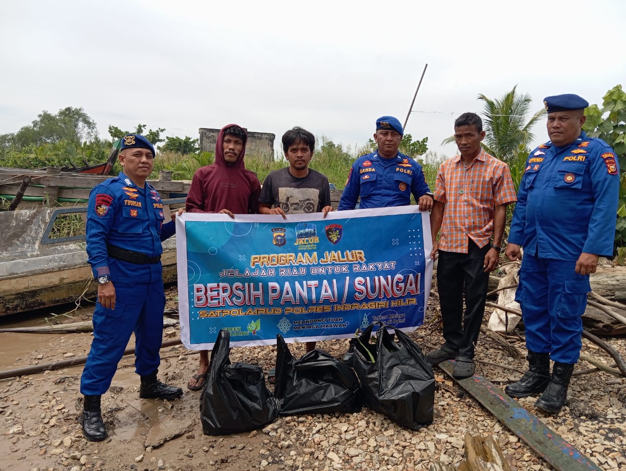 Dalam rangka mendukung Program Jelajah Riau Untuk Rakyat (JALUR), Satuan Polisi Perairan dan Udara (Satpolairud) Polres Indragiri Hilir melaksanakan kegiatan sosial berupa aksi Bersih Pantai dan Sungai di wilayah pesisir Pulau Burung, Kecamatan Pulau Burung, Kabupaten Indragiri Hilir, pada Sabtu (8/11/2025) pagi.