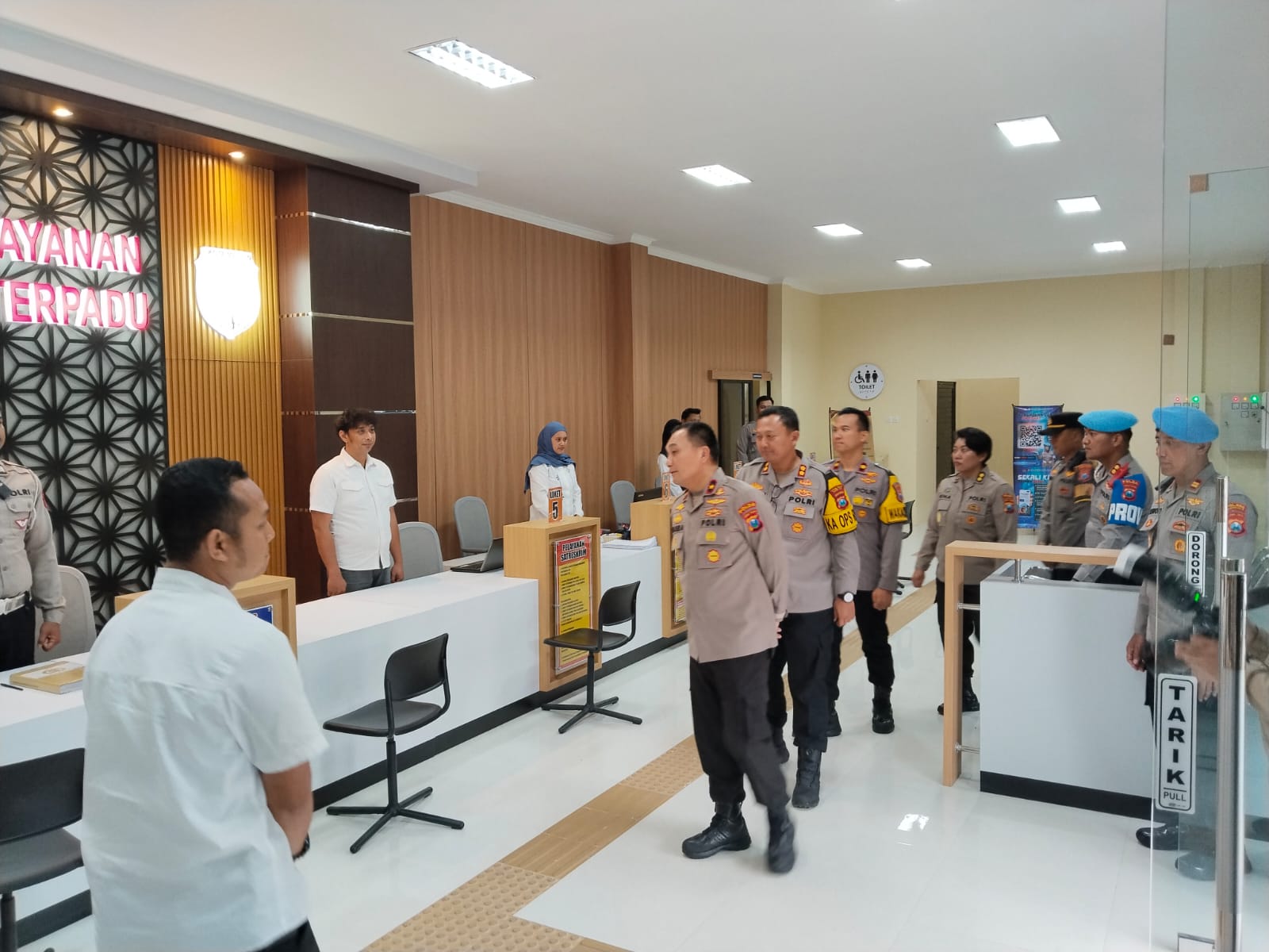 “Terus layani masyarakat dengan ikhlas dan profesional. Tidak ada lagi pungutan dalam pelayanan. Ubah pola pikir lama, bekerja dengan hati dan penuh tanggung jawab,” ujar Brigjen Pol Pasma Royce di sela kegiatan pengecekan fasilitas pelayanan publik.