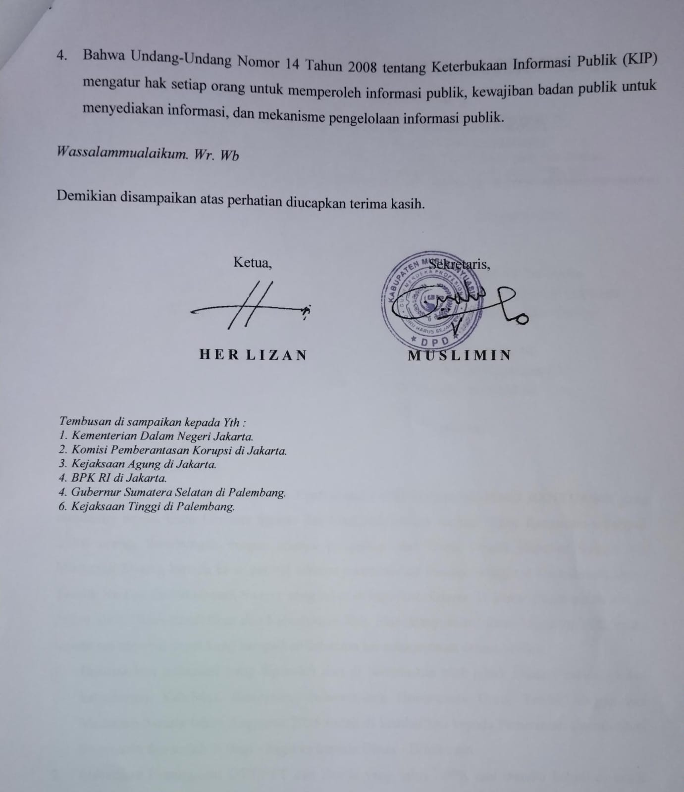 “Mohon kepada DPRD Muba sebagai fungsi pengawasan Pemerintah Daerah muba apakah mengetahui anggaran tersebut sudah di alih fungsi kan atau mengetahui dana tersebut sudah di bagi – bagikan kepada dinas – dinas lain seperti penjelasan dari Dikbud Muba sewaktu RDP di DPRD Muba dan pada saat kami beraudiensi langsung ke Dikbud Muba.kami para guru honorer swasta dan guru madrasah swasta menunggu balasan surat dari anggota DPRD komisi IV Muba,” Ujar Anggota DPD GM PRO Ranti/Ria.