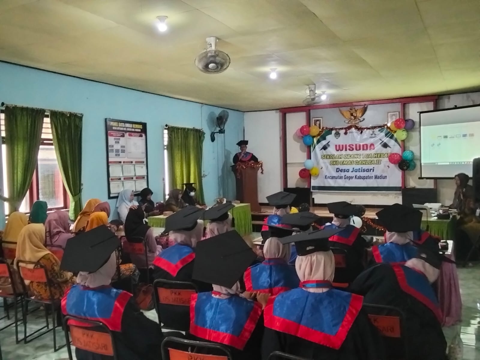 Sedikitnya 20 orang mengikuti wisuda Sekolah Orang Tua Hebat (SOTH) di Desa Jatisari, Kecamatan Geger, Kabupaten Madiun di balai desa setempat, Rabu (11/10/2025).