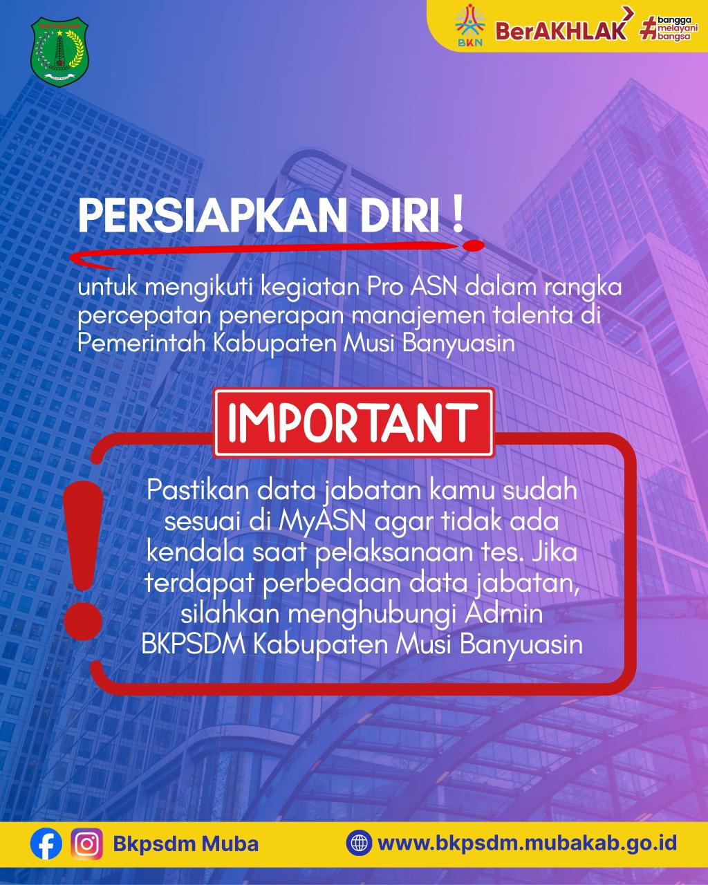Kegiatan ini merupakan bagian dari program prioritas Badan Kepegawaian Negara (BKN) untuk memperkuat tata kelola manajemen talenta nasional. Kepala BKPSDM Muba, H Pathi Riduan SE ATD MM, menjelaskan bahwa Pro ASN tidak hanya menjadi proses pemetaan potensi, tetapi juga menjadi instrumen penting dalam memperbaiki penempatan ASN secara lebih tepat dan akuntabel.