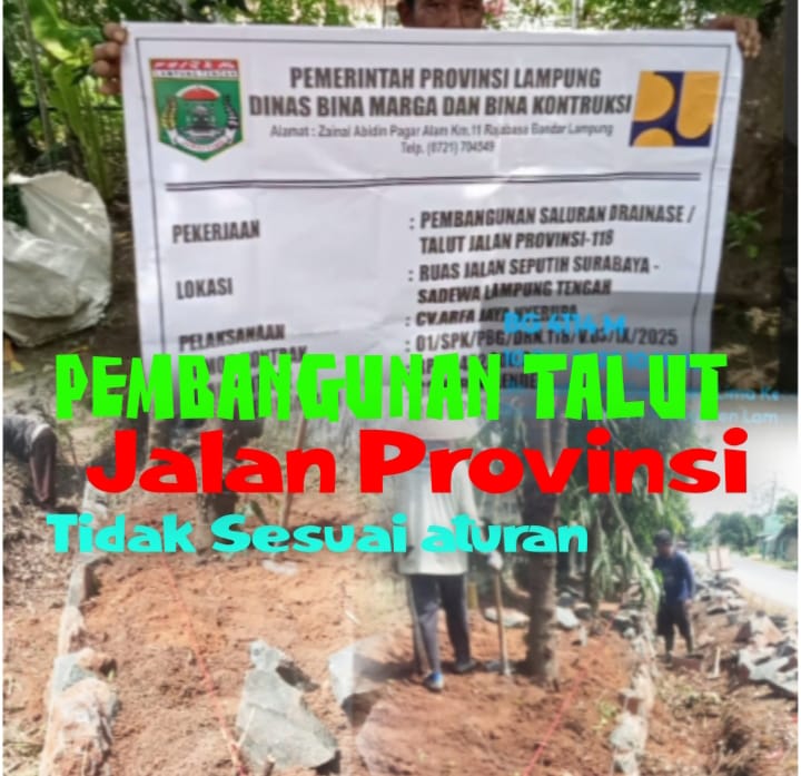 Lemahnya pengawasan dari pihak terkait menjadi peluang bagi penerima tender proyekdari akal-akalan penyusunan batu adukan semen dan pasir tidak sesuai spefikasinya, papan informasi proyek di simpan dan akan di pasang di tubuh pekerja saat di tanyakan. Hasil pantauan tim media pembangunan talut jalan provinsi lokasi ruas jalan Seputih Surabaya – Sadewa Lampung Tengah tepatnya di Kampung Gaya Baru V Kecamatan Bandar Surabaya Kabupaten Lampung Tengah.