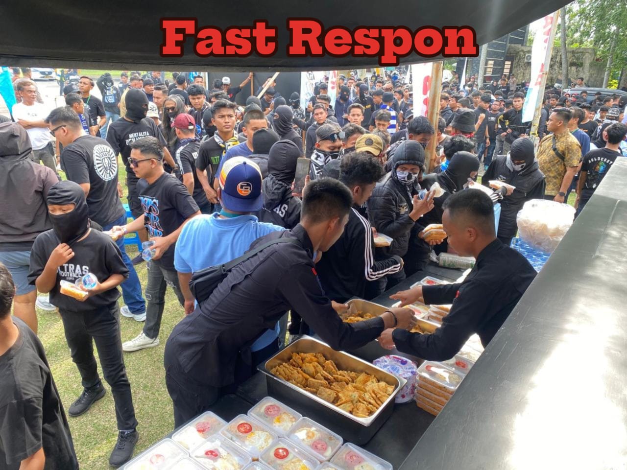 Suasana terlihat penuh keakraban duduk bersama Kapolda Riau dan para suporter makan bersama dan sekaligus doa bersama.
