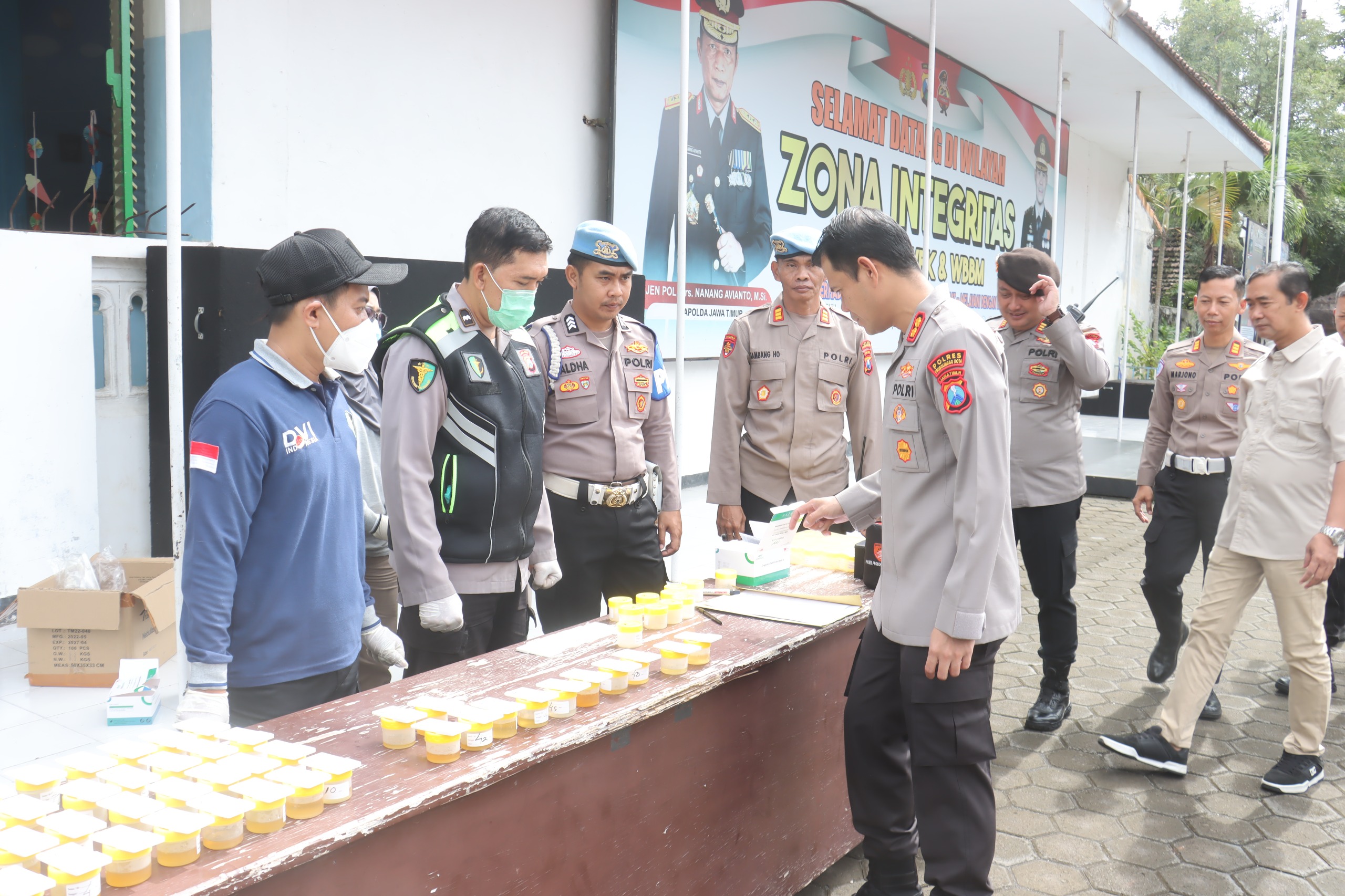 Polres Probolinggo Kota menggelar tes urine terhadap seluruh anggotanya sebagai langkah mitigasi dan pencegahan penyalahgunaan narkoba di internal kepolisian. Kegiatan tersebut dilaksanakan di Lapangan Apel Polres Probolinggo Kota, Kamis (26/2/2026), selepas apel pagi.