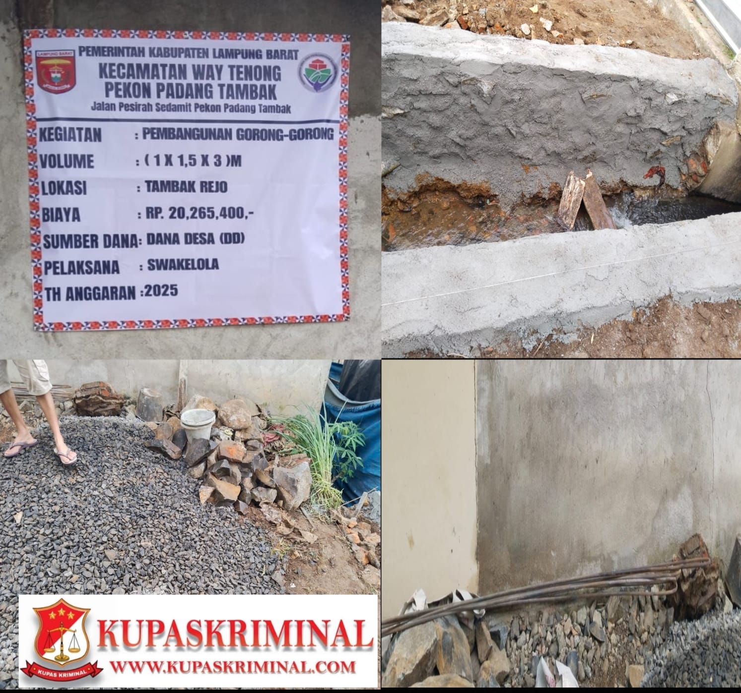 Proyek pembangunan gorong-gorong di Pekon Padang Tambak, Kecamatan Way Tenong, Kabupaten Lampung Barat, kembali menuai sorotan tajam.