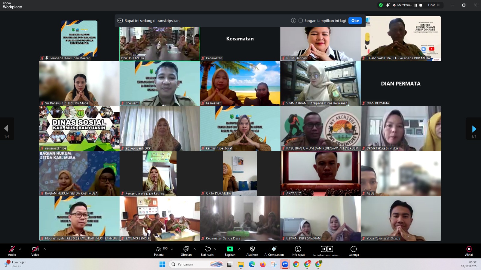 Dinas Perpustakaan dan Kearsipan Kabupaten Musi Banyuasin menggelar Sosialisasi Aplikasi Sistem Informasi Kearsipan Nasional (SIKN) dan Jaringan Informasi Kearsipan Nasional (JIKN), Formulir Audit Pengawasan Kearsipan terbaru, Legal Material, Pengelolaan Arsip Dinamis, serta Aplikasi Srikandi. Pada kegiatan ini juga disampaikan materi terkait Peraturan Daerah dan Peraturan Bupati mengenai penyelenggaraan urusan kearsipan bagi seluruh perangkat daerah di lingkungan Pemerintah Kabupaten Muba. Sosialisasi berlangsung secara virtual melalui Zoom Meeting, Rabu (3/12/2025).