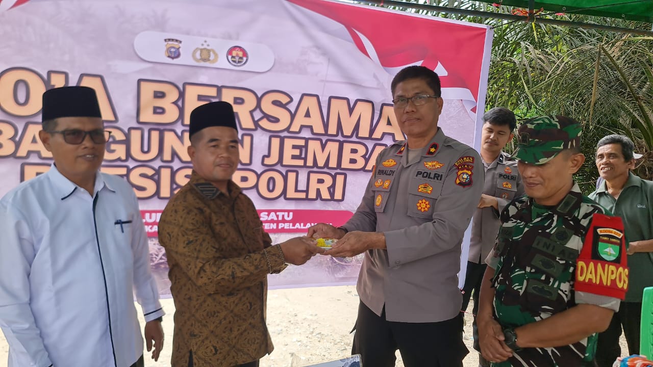 Doa bersama pembangunan jembatan presisi Polri di Kampung Melati, Kelurahan Sorek Satu, Kecamatan Pangkalan Kuras, telah berlangsung pada Rabu, 28 Januari 2026. Kegiatan ini dihadiri oleh sejumlah pejabat, termasuk Kapolsek Pangkalan Kuras, Kompol Rinaldy Parlindungan, SH, Danramil’04 Pkl. Kuras yang diwakilkan oleh Peltu Saragih, dan Camat Pkl. Kuras yang diwakilkan oleh Staf Kec. Pkl. Kuras, Sdr. H. Syarifudin, M. Si.