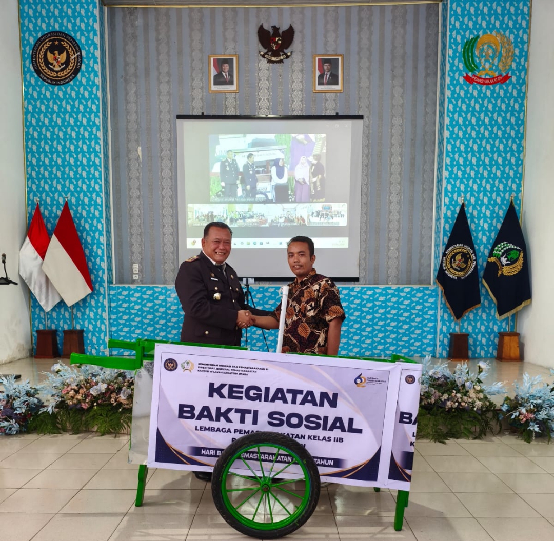 Lembaga Pemasyarakatan (Lapas) Kelas IIB Padangsidimpuan, Provinsi Sumatera Utara, menunjukkan kepedulian sosial dengan memberikan bantuan berupa gerobak usaha kepada keluarga warga binaan. Kegiatan ini merupakan bagian dari rangkaian Tasyakuran Hari Bhakti Pemasyarakatan (HBP) ke-62 yang dilaksanakan sebagai bentuk nyata dukungan terhadap pemberdayaan ekonomi masyarakat.